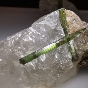 Splendida Tormalina verde su quarzo (Beautiful Green Tourmaline on Quartz)