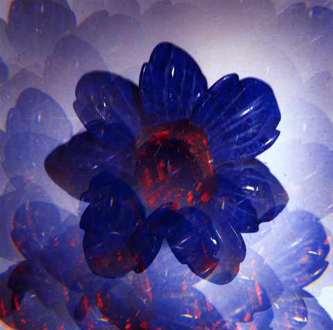 Fantasia di un fiore in lapislazzuli e granato essonite.