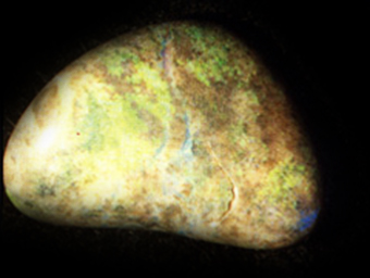 Ciottolo di opale australiano. La presenza di molta matrice, non pregiudica il fascino di questi caleidoscopi naturali.