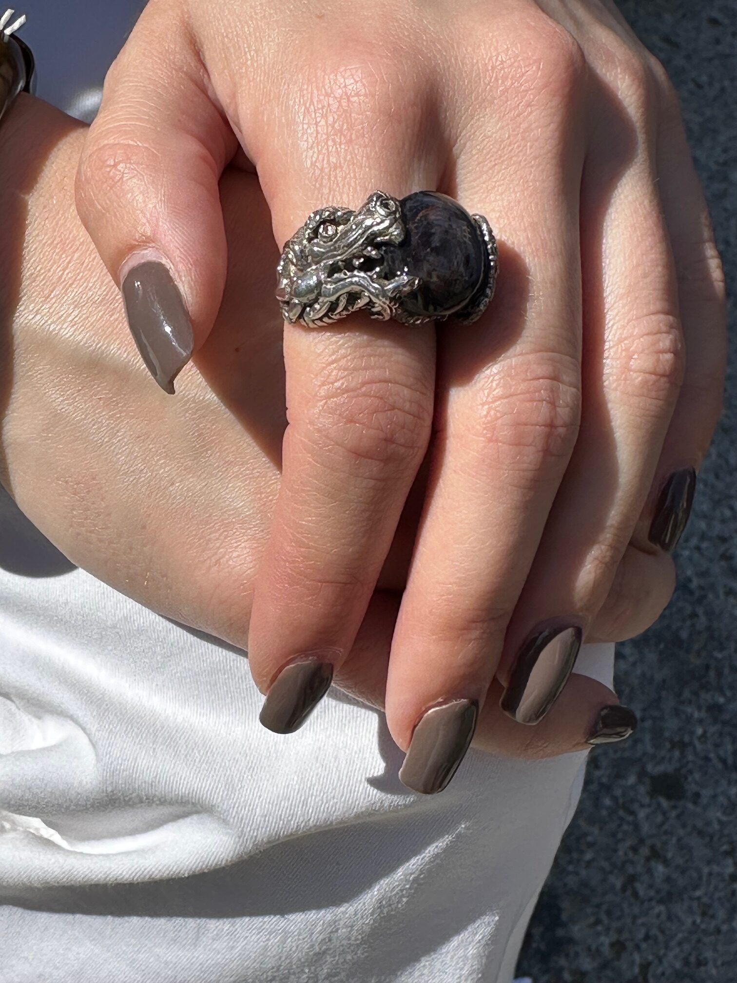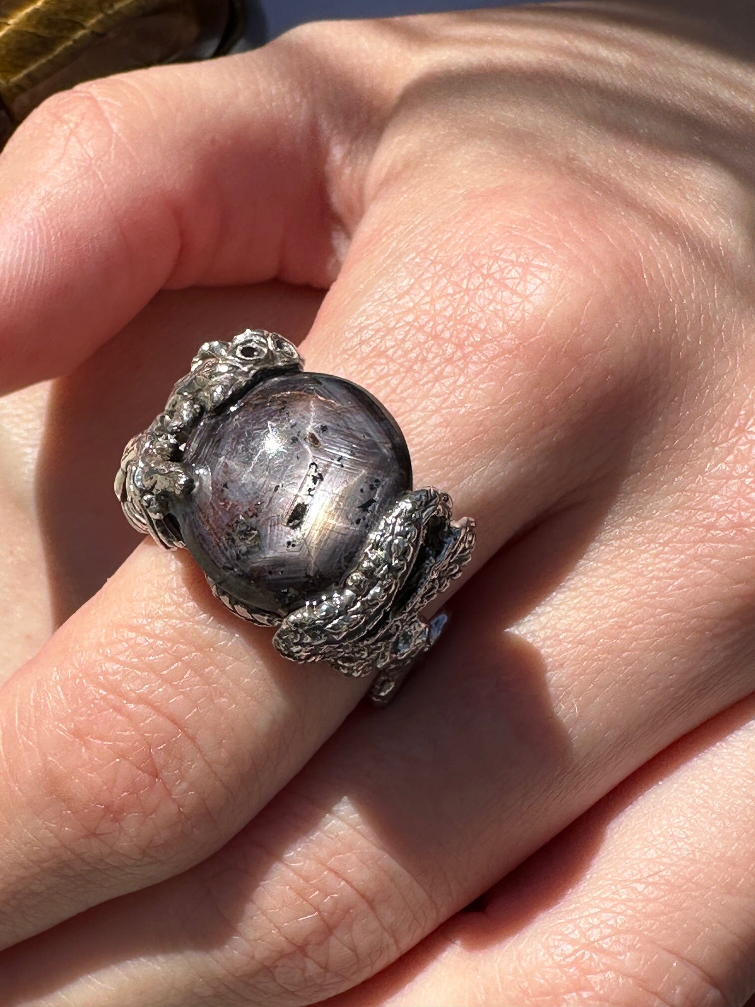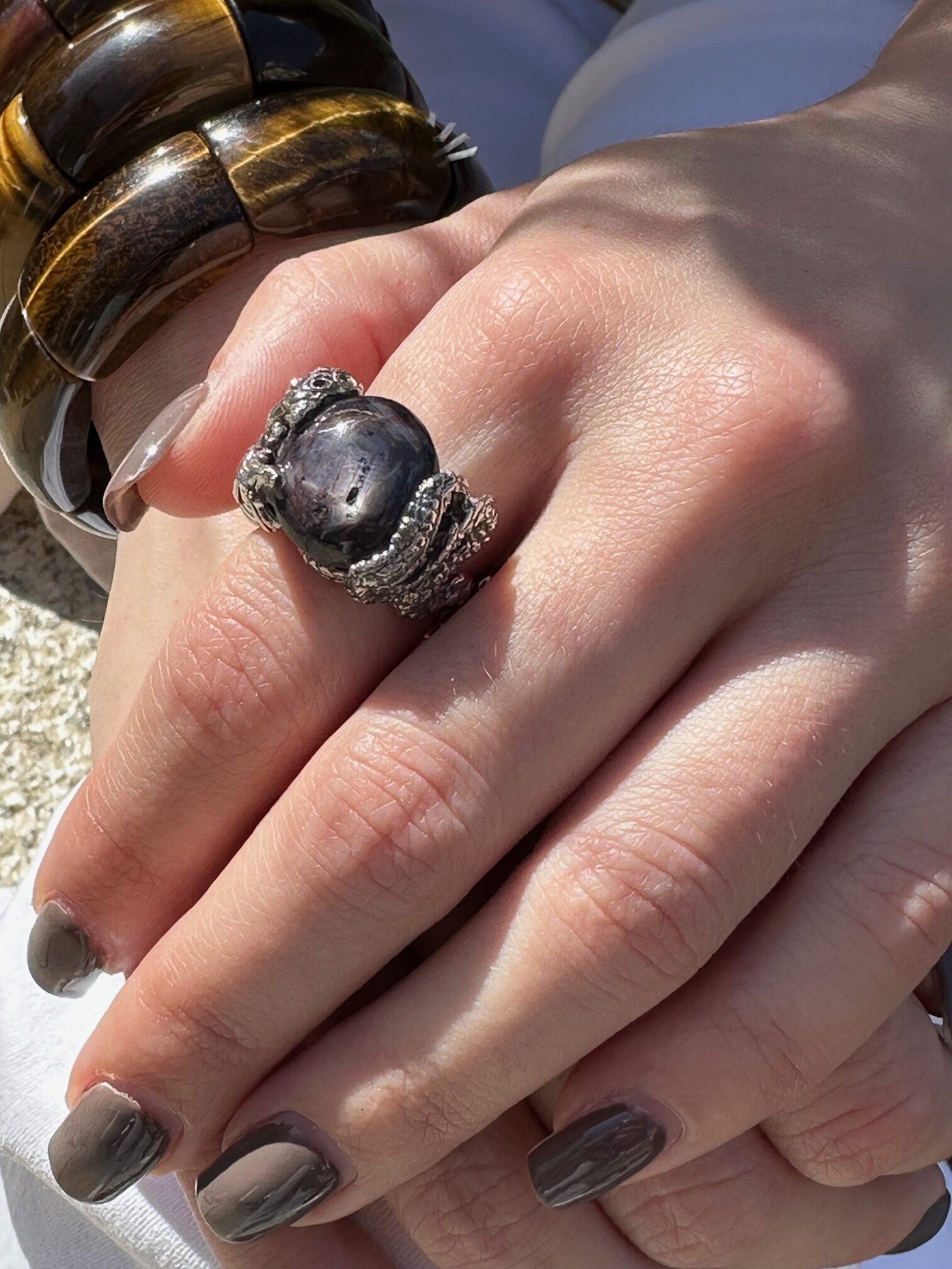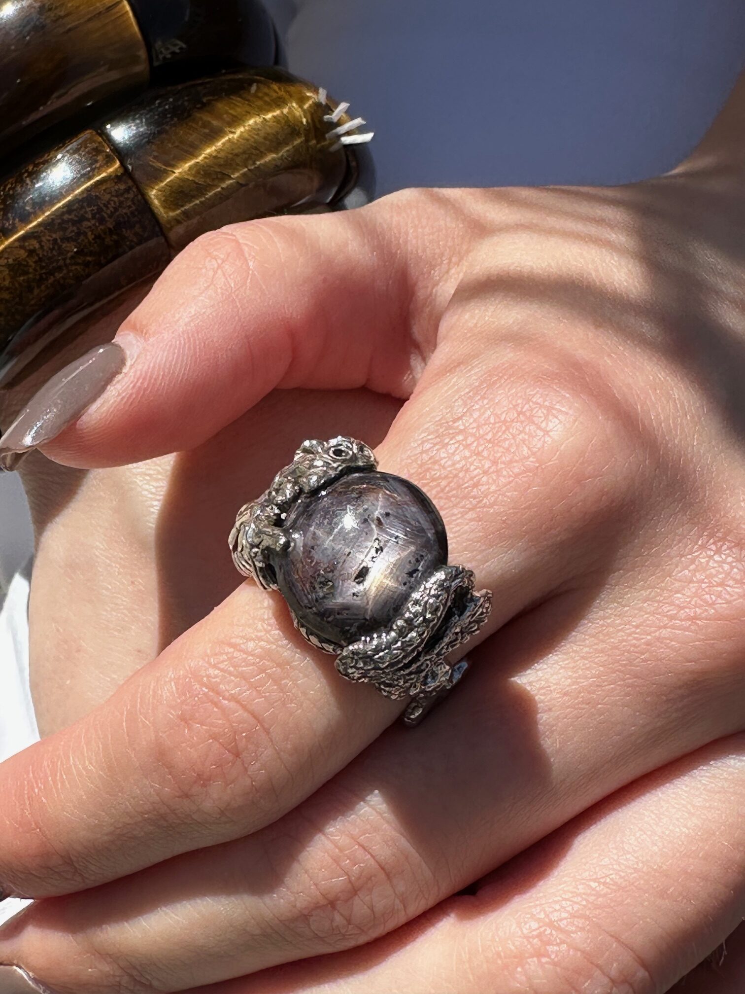 Anello del Dragone con Corindone (zaffiro scuro) stellato
