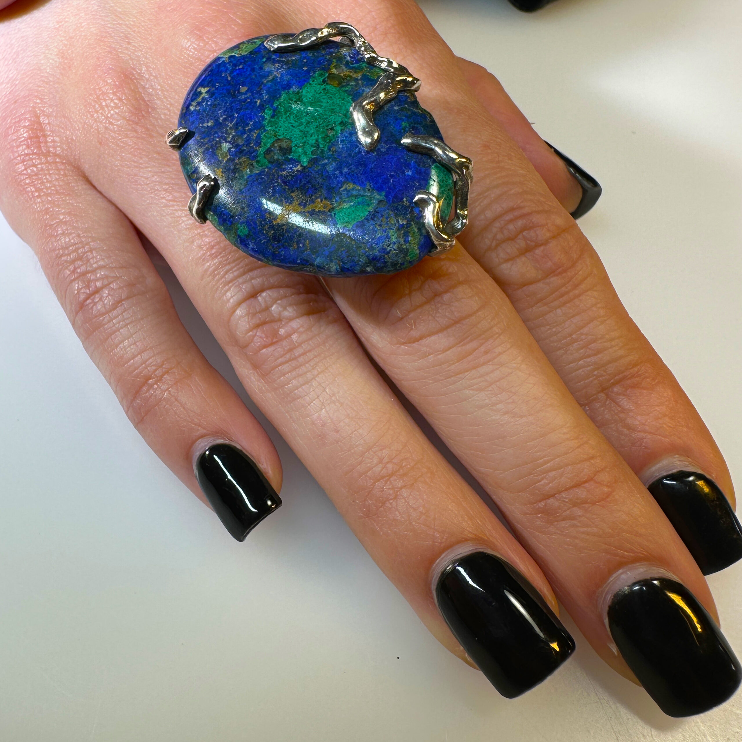 La struttura in metallo dell’anello è quella della radice rovesciata. È l’anima femminile del gioiello. Si abbraccia al dito, abbraccia la pietra, è tutta un abbraccio.