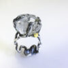 La pietra è durezza, colore, luce, energia. È l’anima maschile del gioiello. Se non fosse per la radice che la trattiene, continuerebbe a rotolare nel fiume, o languirebbe nel buio della montagna. Ma, ora, grazie al “Ramo di Fuoco”, può inebriarsi di luce.