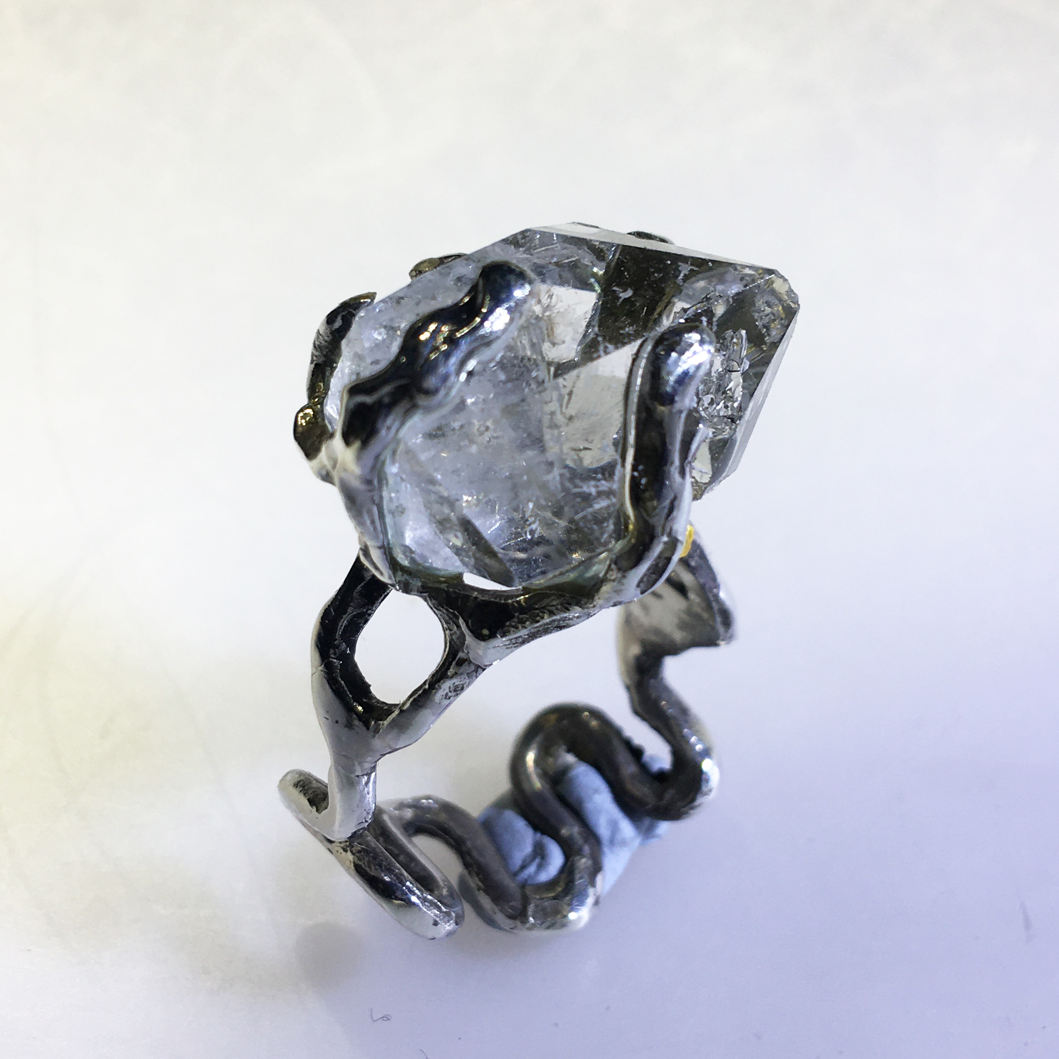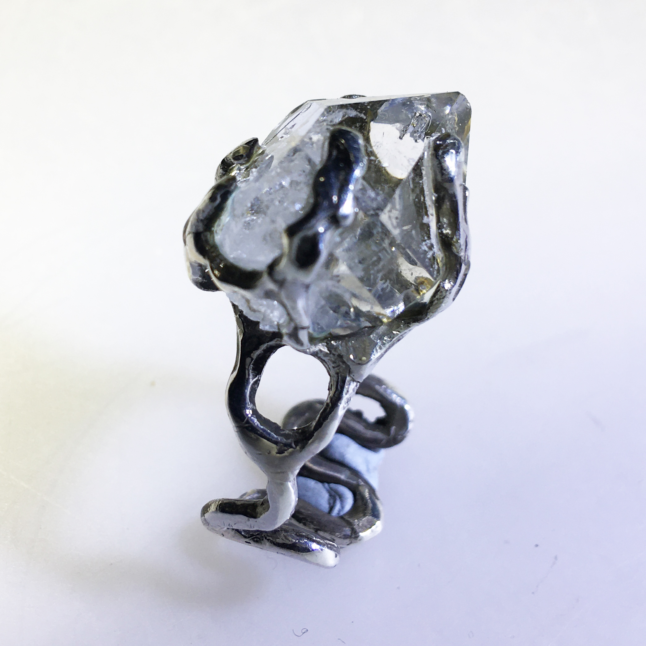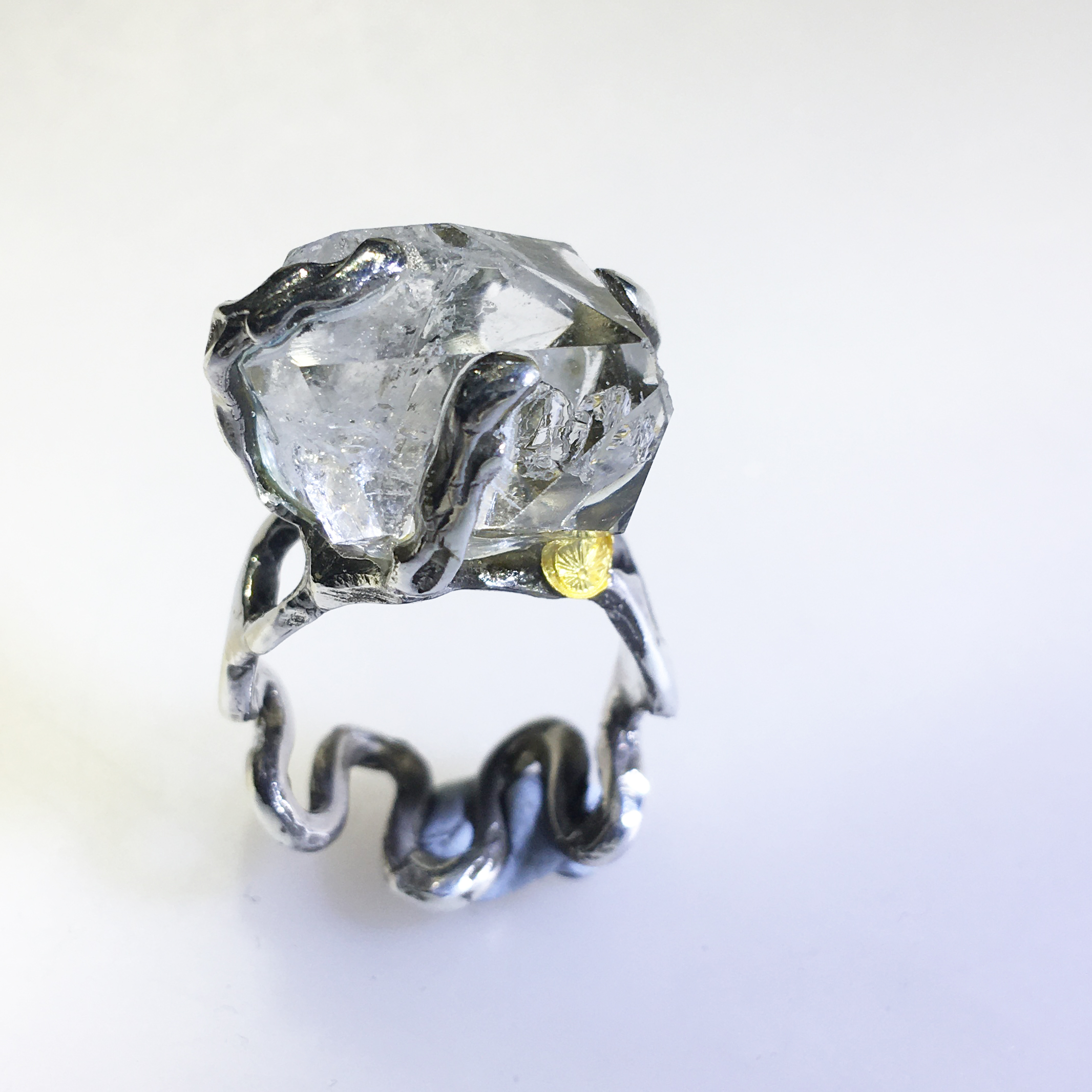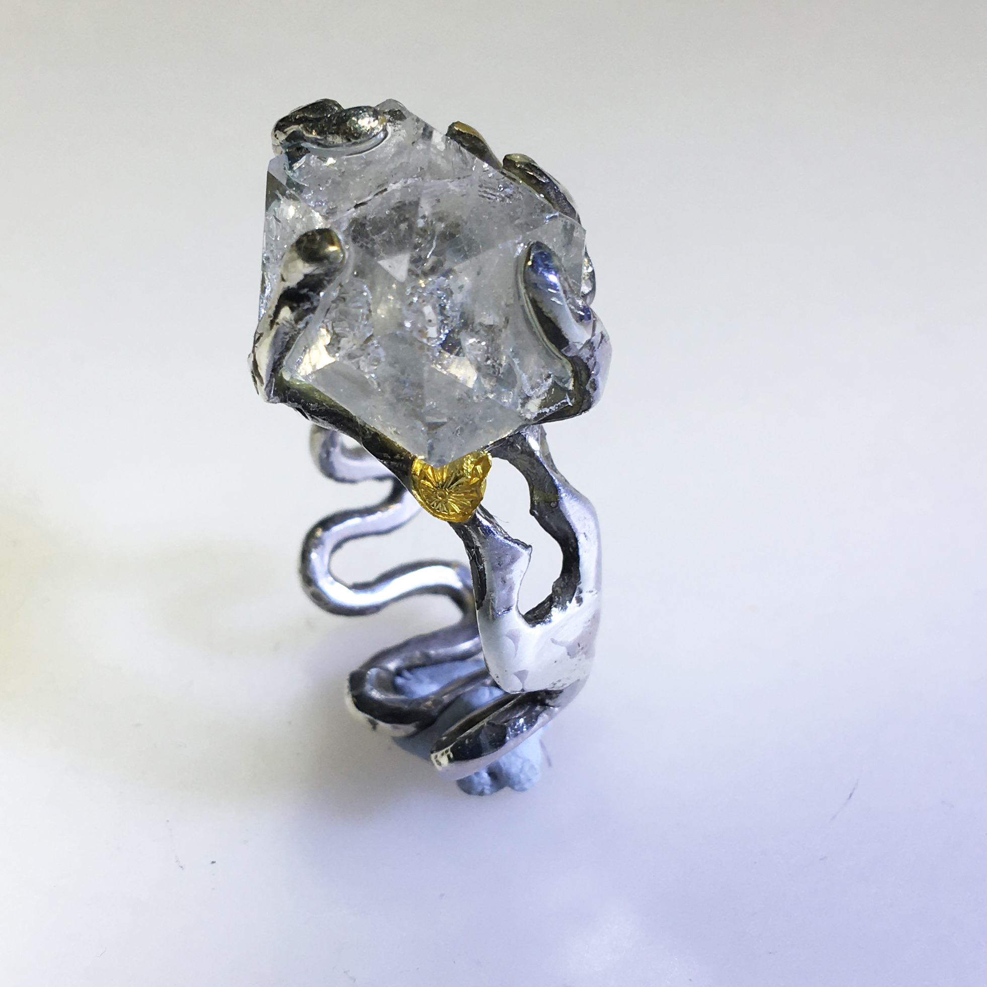 Anello del ramo di fuoco con cristallo di quarzo diamante