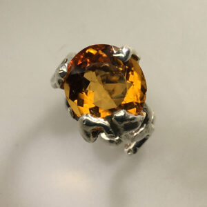 La struttura in metallo dell’anello è quella della radice rovesciata. È l’anima femminile del gioiello. Si abbraccia al dito, abbraccia la pietra, è tutta un abbraccio.