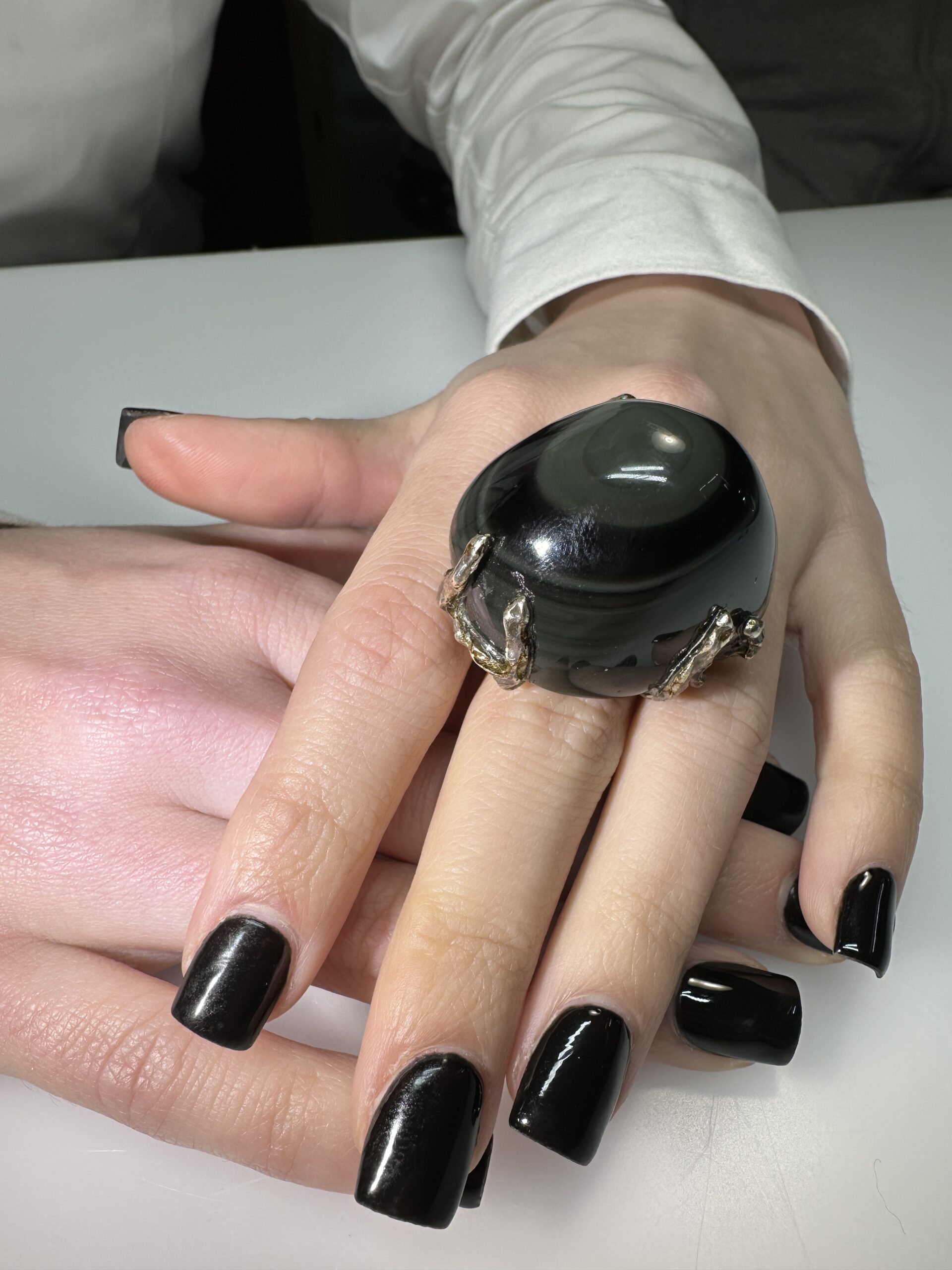 La struttura in metallo dell’anello è quella della radice rovesciata. È l’anima femminile del gioiello. Si abbraccia al dito, abbraccia la pietra, è tutta un abbraccio.