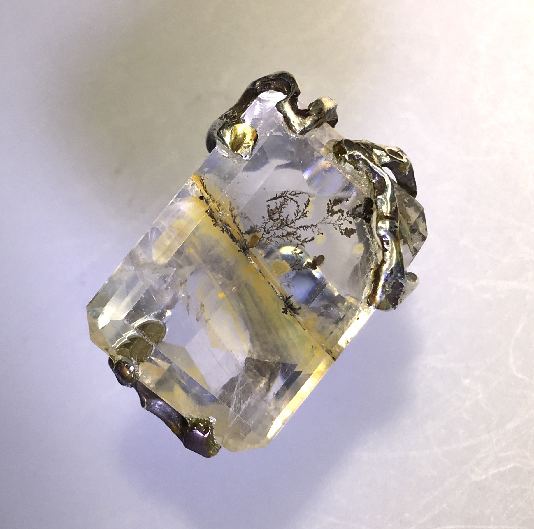 La pietra è durezza, colore, luce, energia. È l’anima maschile del gioiello. Se non fosse per la radice che la trattiene, continuerebbe a rotolare nel fiume, o languirebbe nel buio della montagna. Ma, ora, grazie al “Ramo di Fuoco”, può inebriarsi di luce.