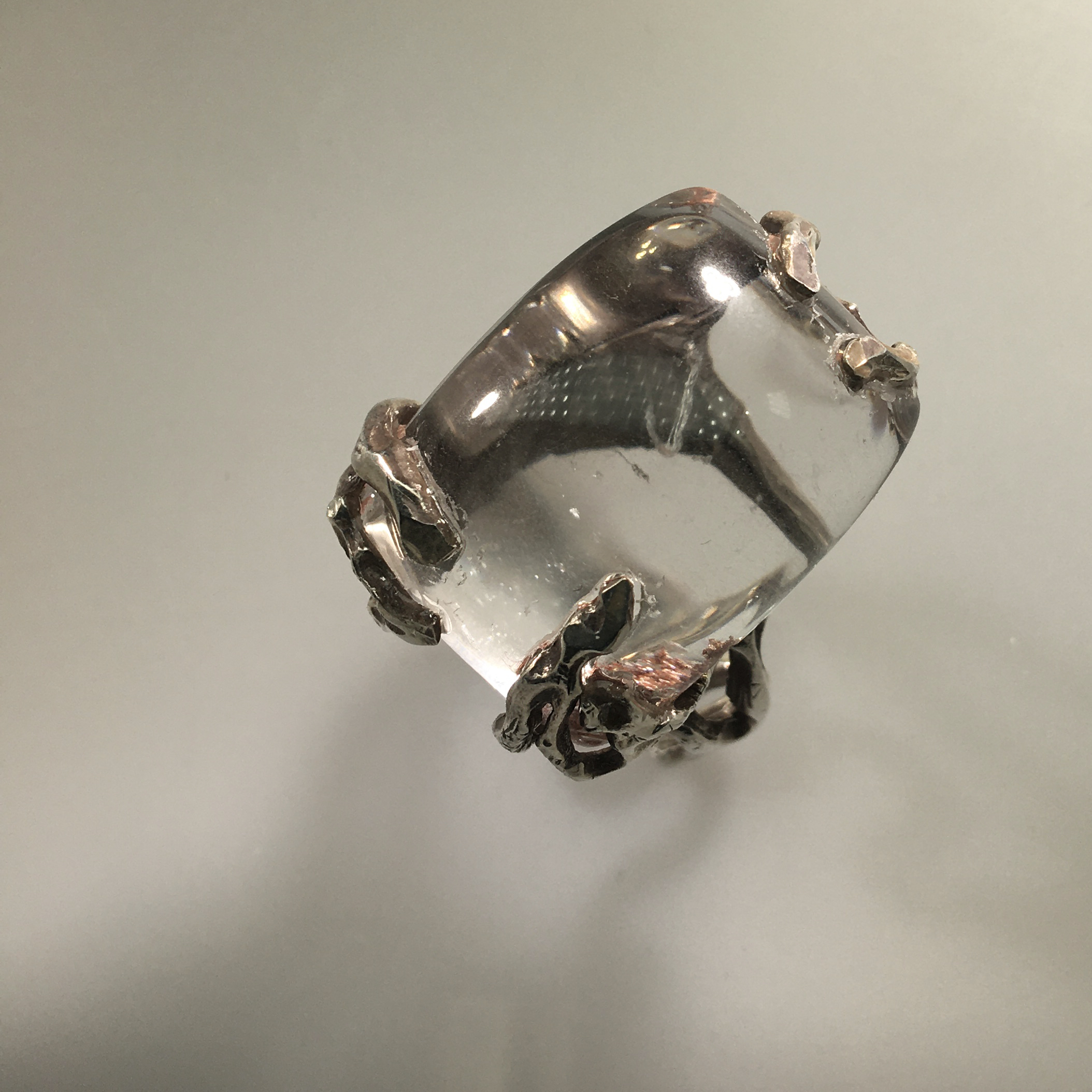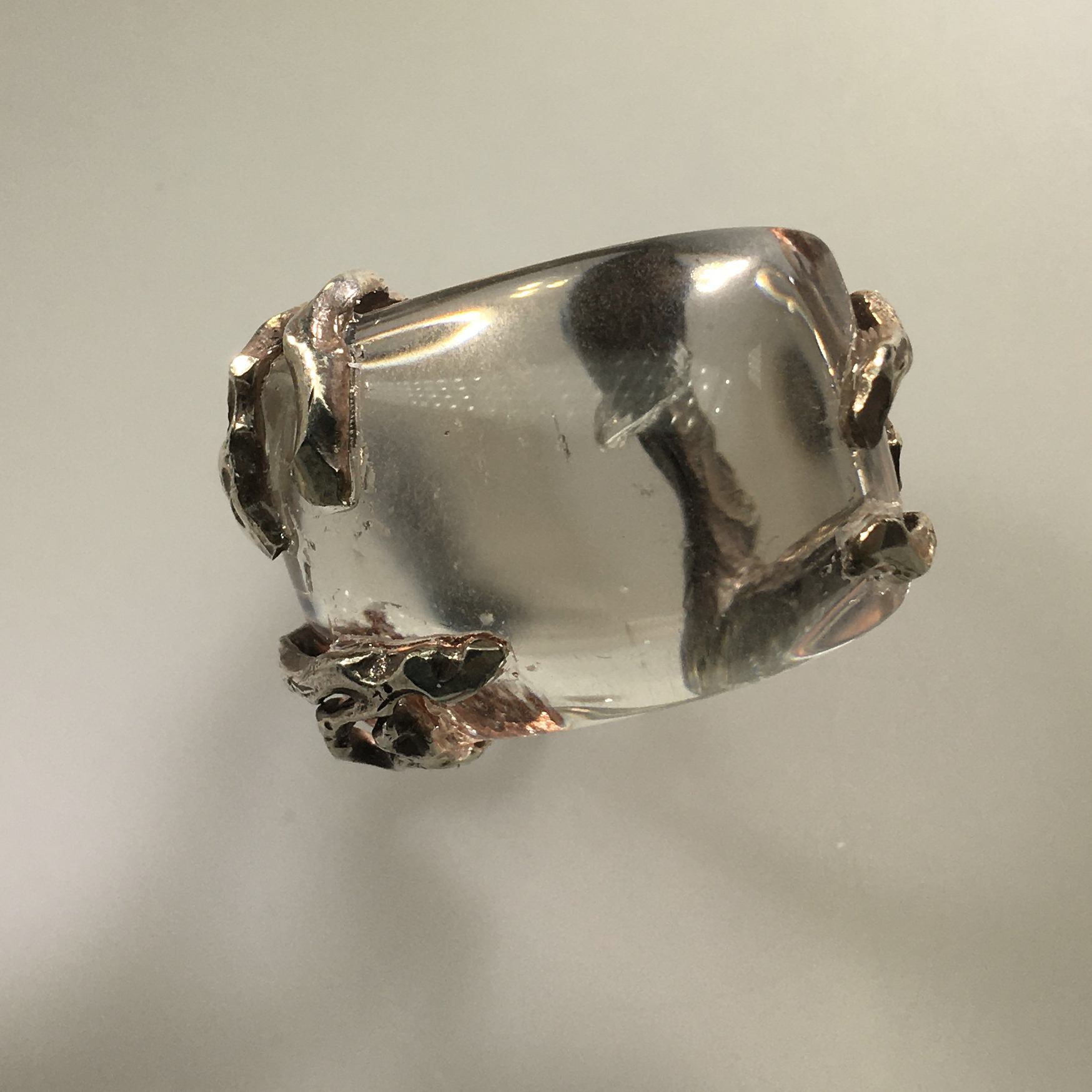 Anello del ramo di fuoco con quarzo ialino cabochon