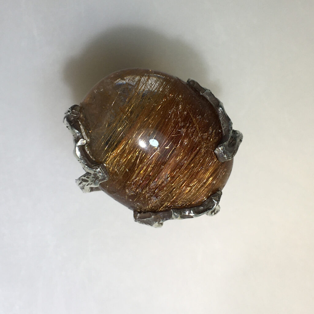 La pietra è durezza, colore, luce, energia. È l’anima maschile del gioiello. Se non fosse per la radice che la trattiene, continuerebbe a rotolare nel fiume, o languirebbe nel buio della montagna. Ma, ora, grazie al “Ramo di Fuoco”, può inebriarsi di luce.