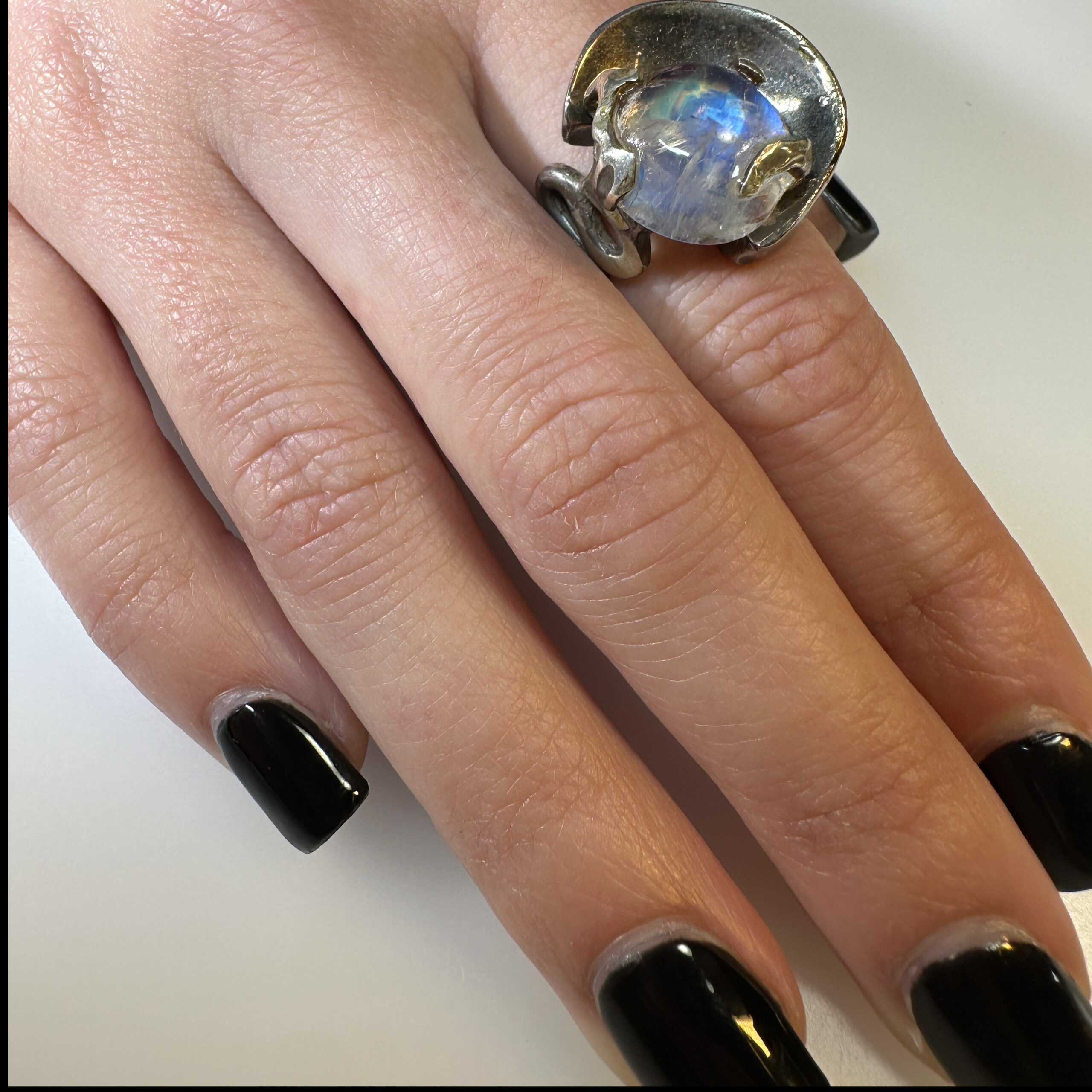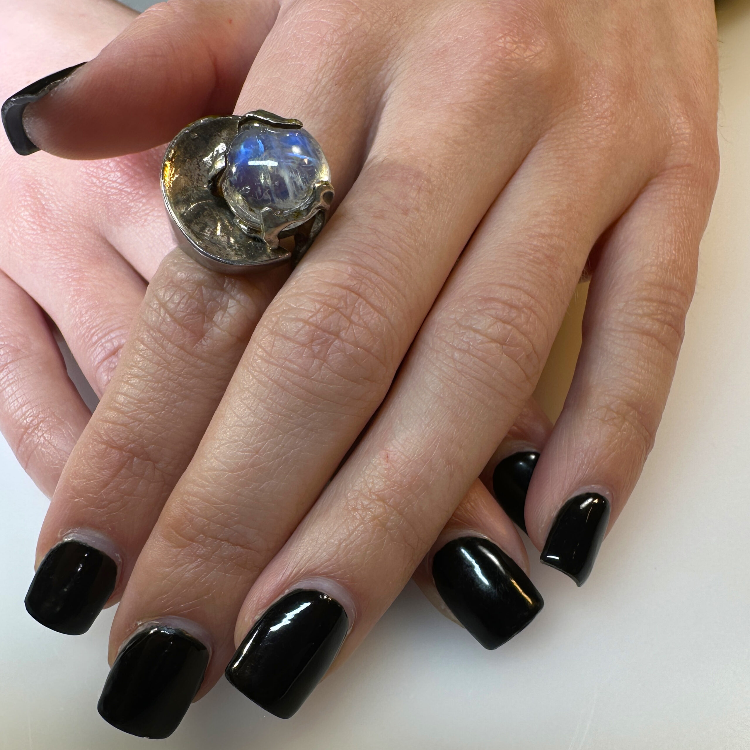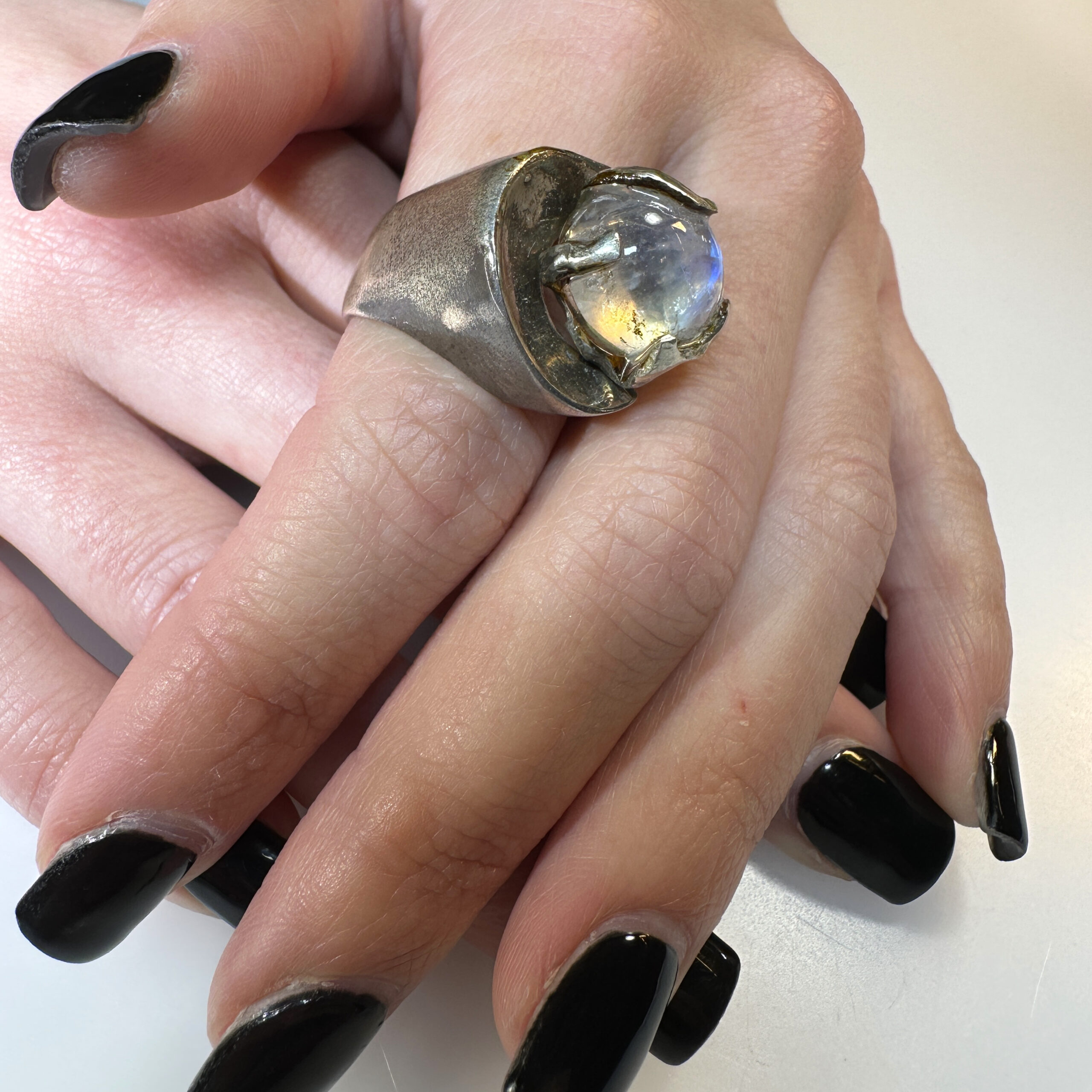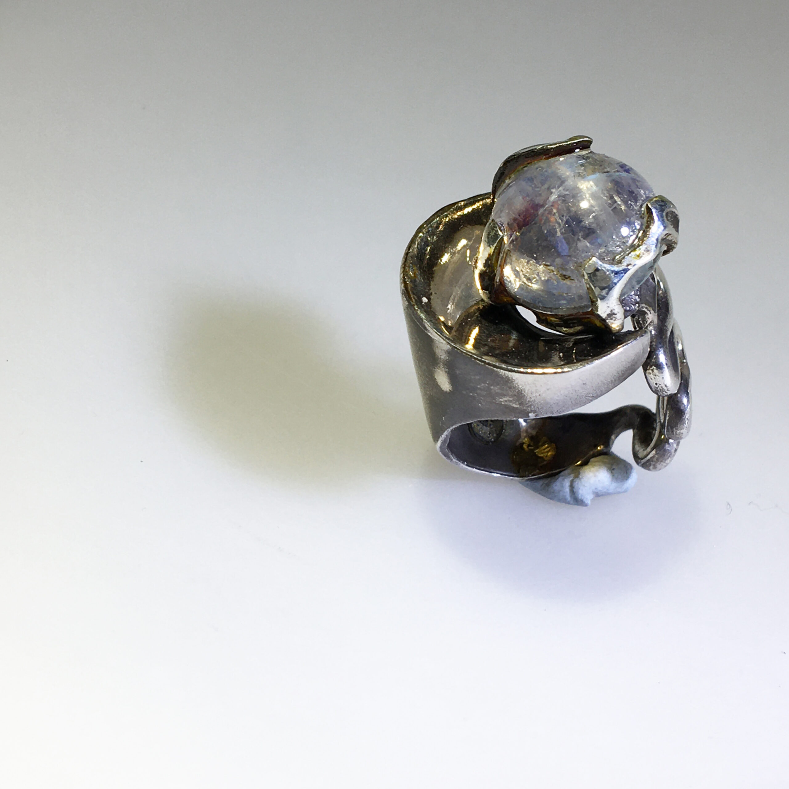 Ogni cosa è in qualche modo legata a ogni altra cosa, è quindi normale il legame che moltissime persone hanno con la Luna, così bella, avvolgente, maestosa, quasi sfacciata nella sua nudità… ma io sono interessata alla parte più misteriosa, quella che non si vede, quella che è nascosta, e che posso vedere solo nei sogni. Questo anello è una macchina. Una macchina per aiutarmi a sognare la magia della Luna Nera. Una Luna che desidero tutta per me.