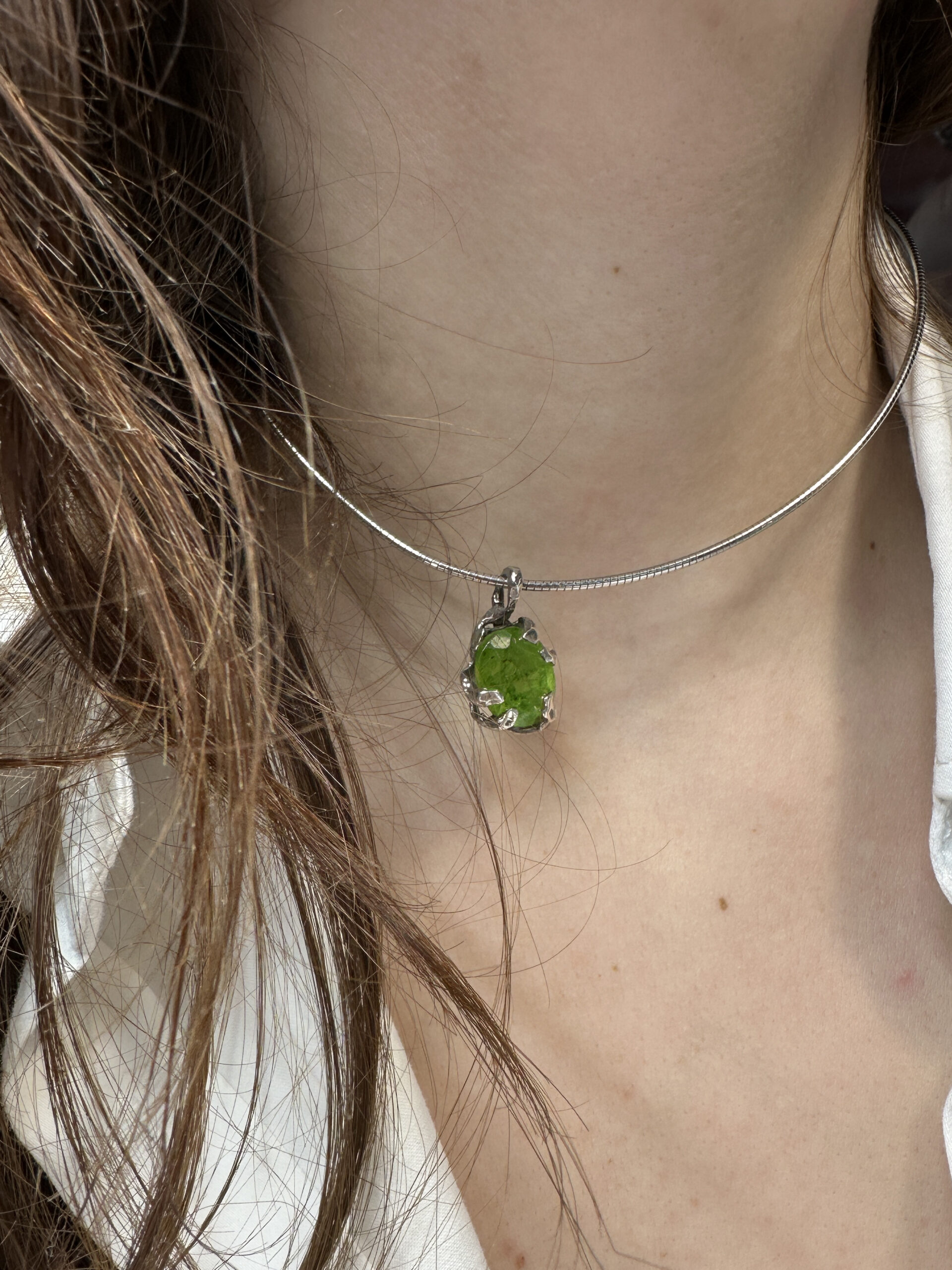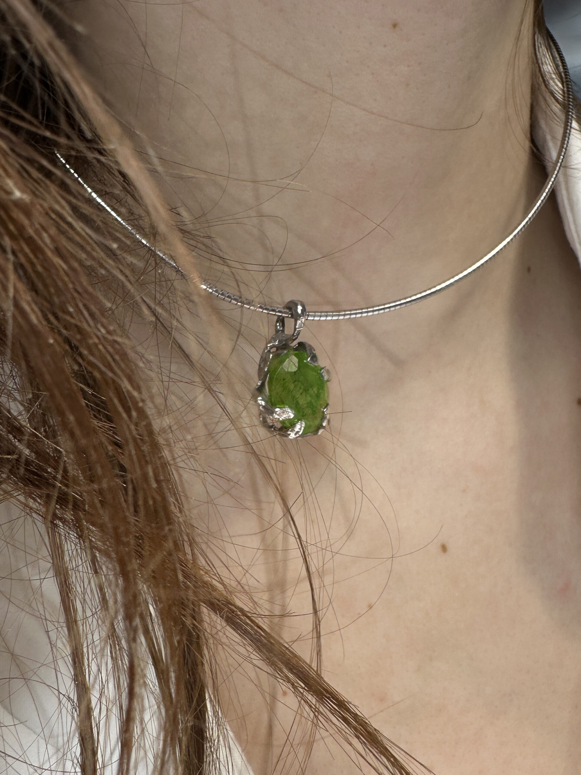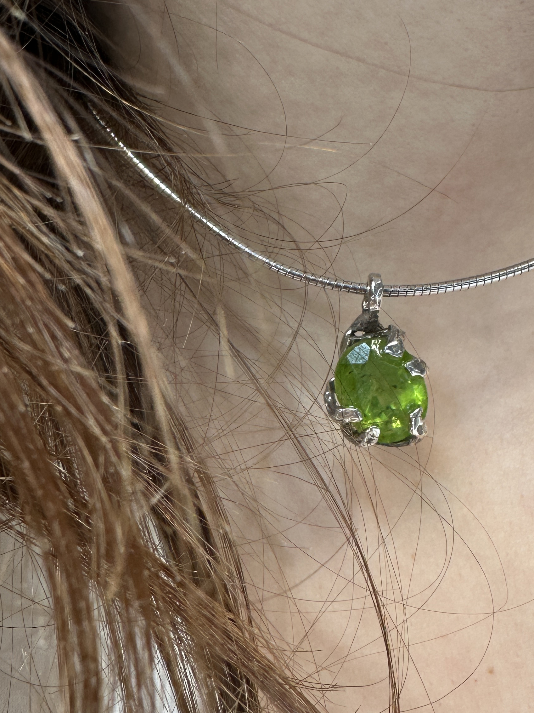 Ciondolo del ramo di fuoco in argento 925‰ e Peridoto taglio ovale sfaccettato mm 14x11x8