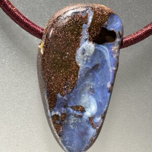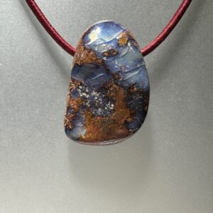 Descrizione: ciondolo di quarzo ialino (cristallo allungato ben formato e trasparente). Treccia elastica bordeaux (disponibile anche nera) regolabile.