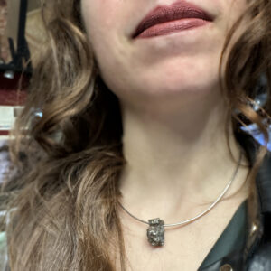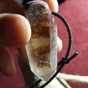 Ciondolo quarzo dentritico naturale. Treccia elastica bordeaux (disponibile anche nera) regolabile.
