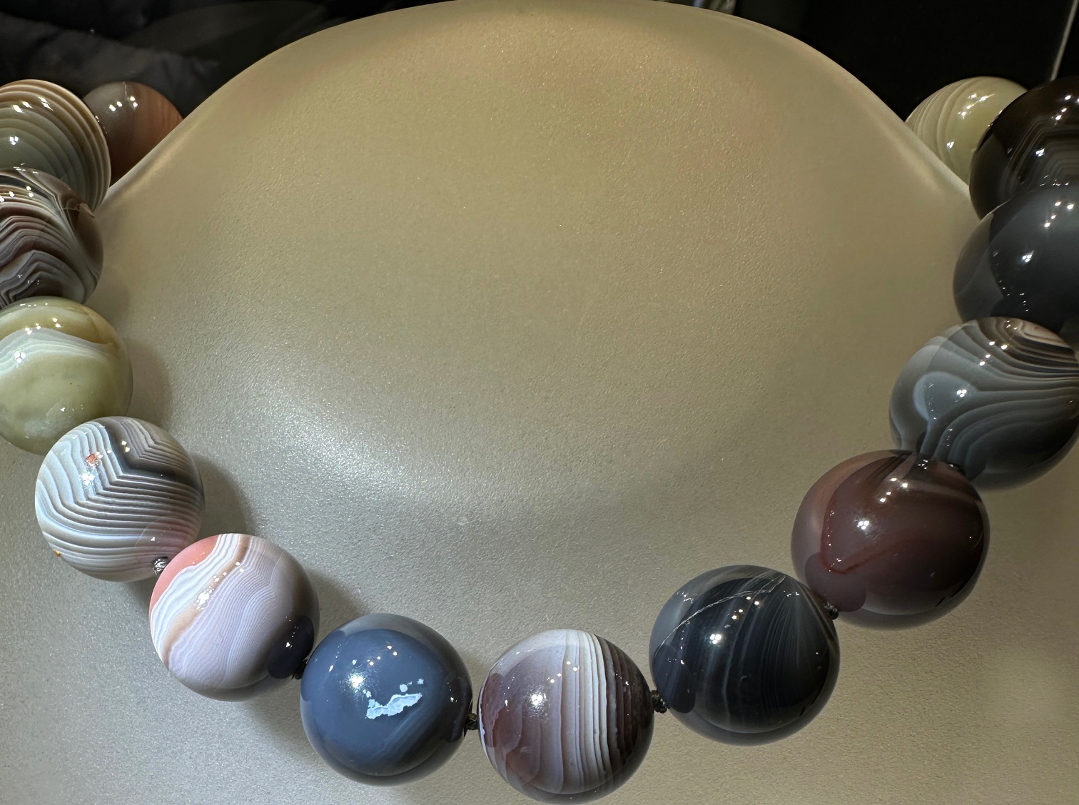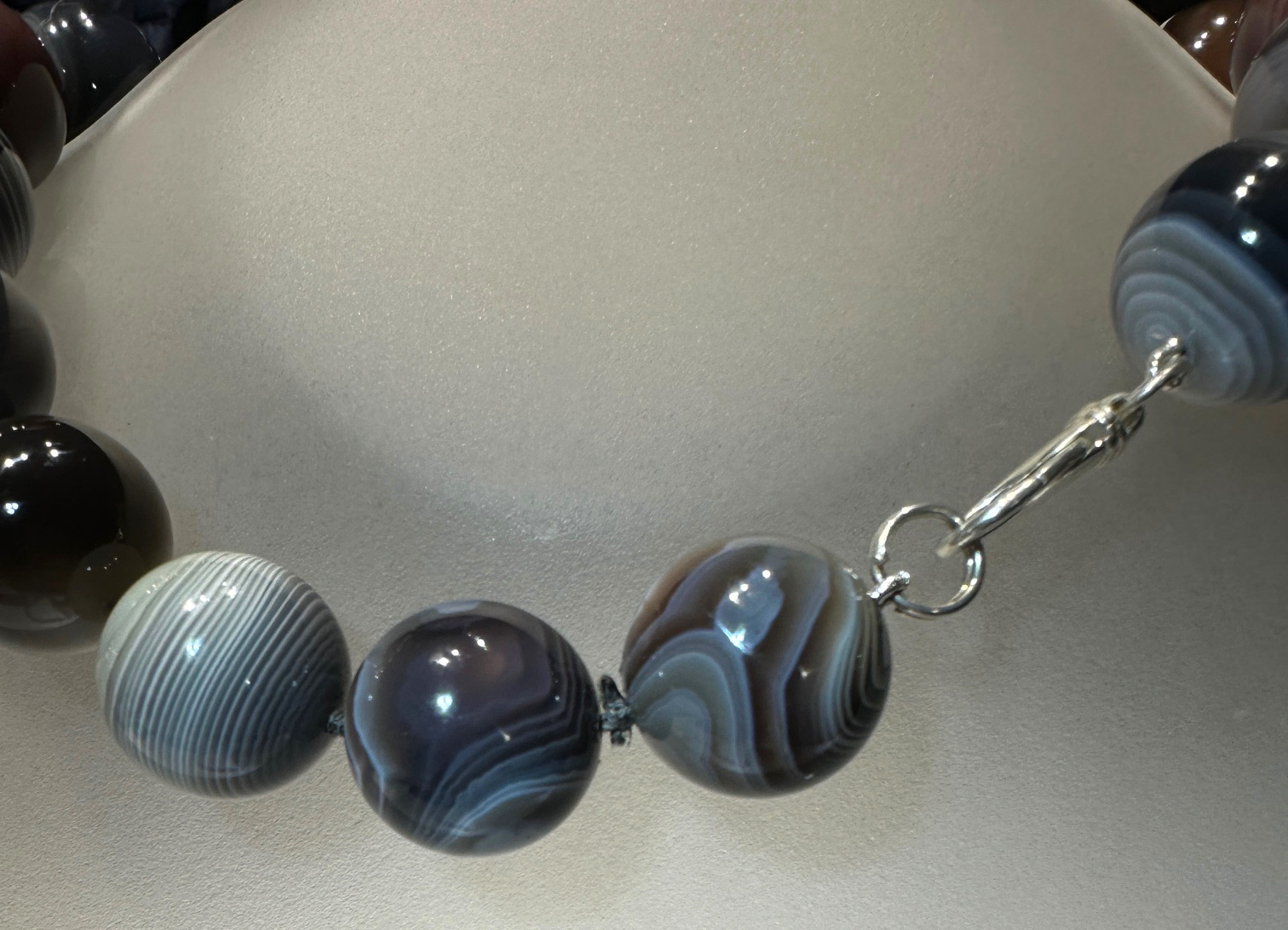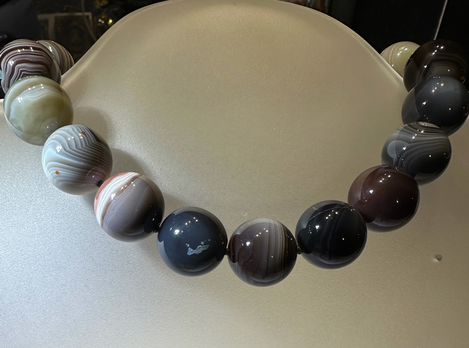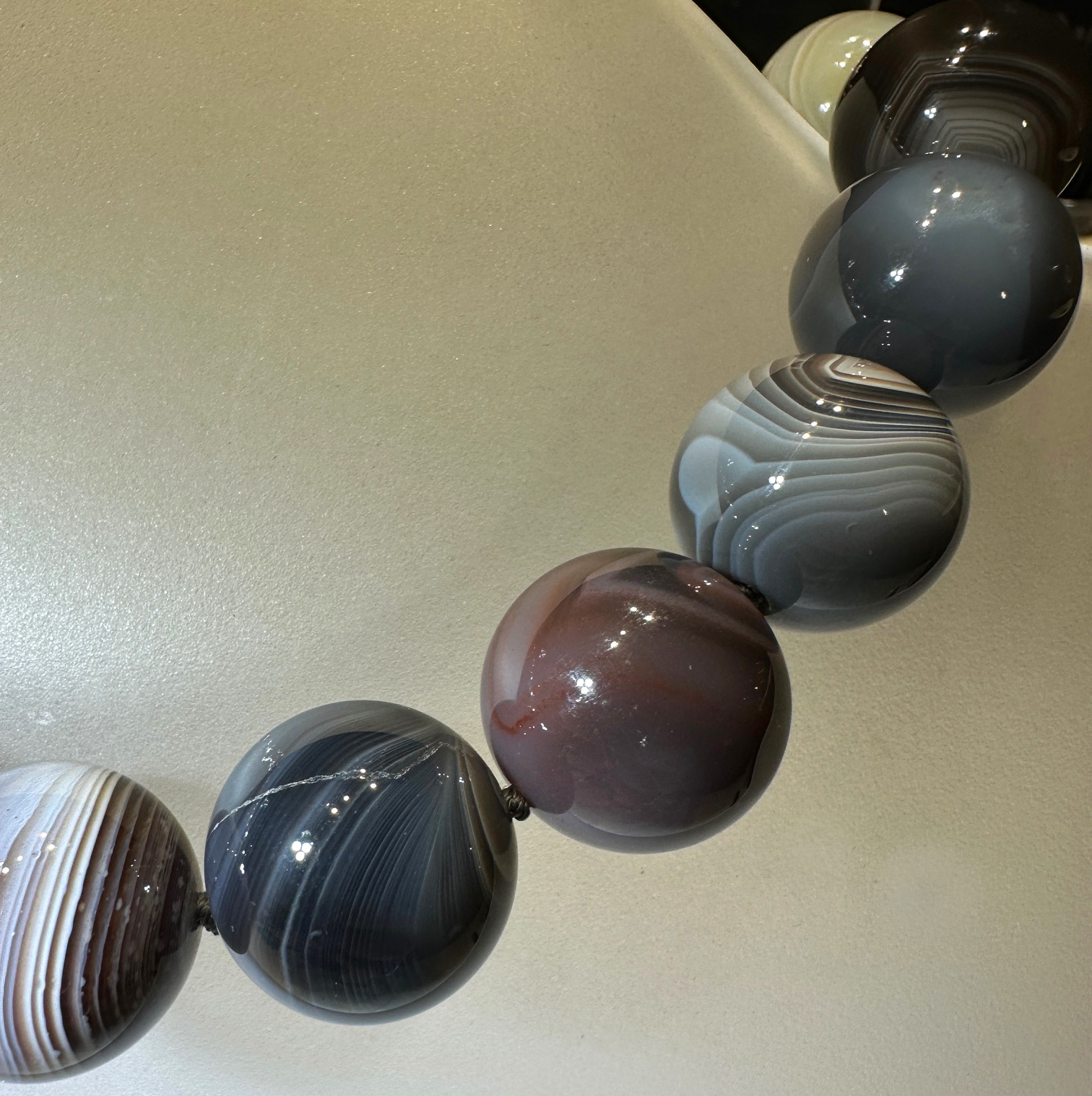 Collana di agata del Borzawana naturale a sfera mm20 lunghezza ciollana cm 44 con chiusura in argento 925‰.