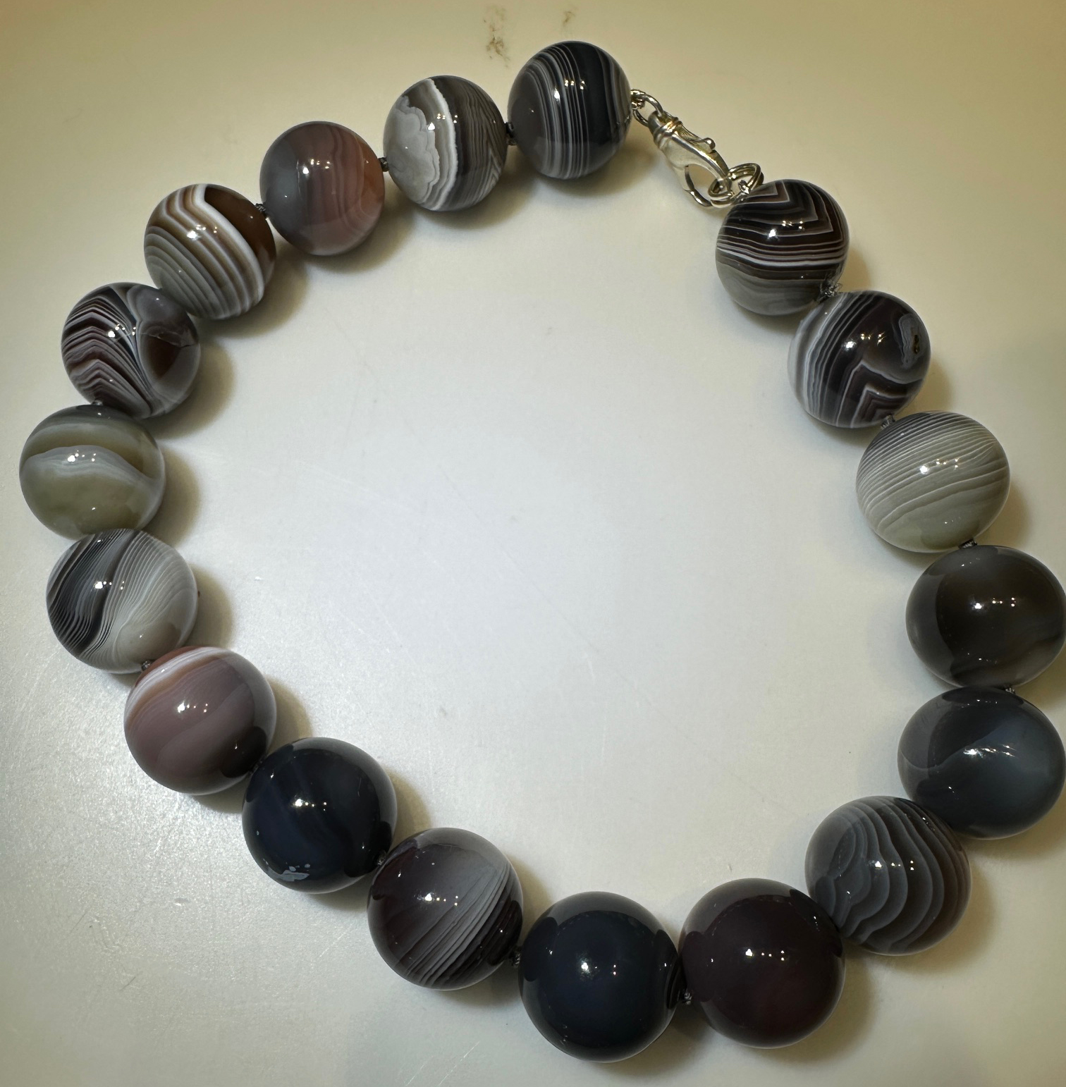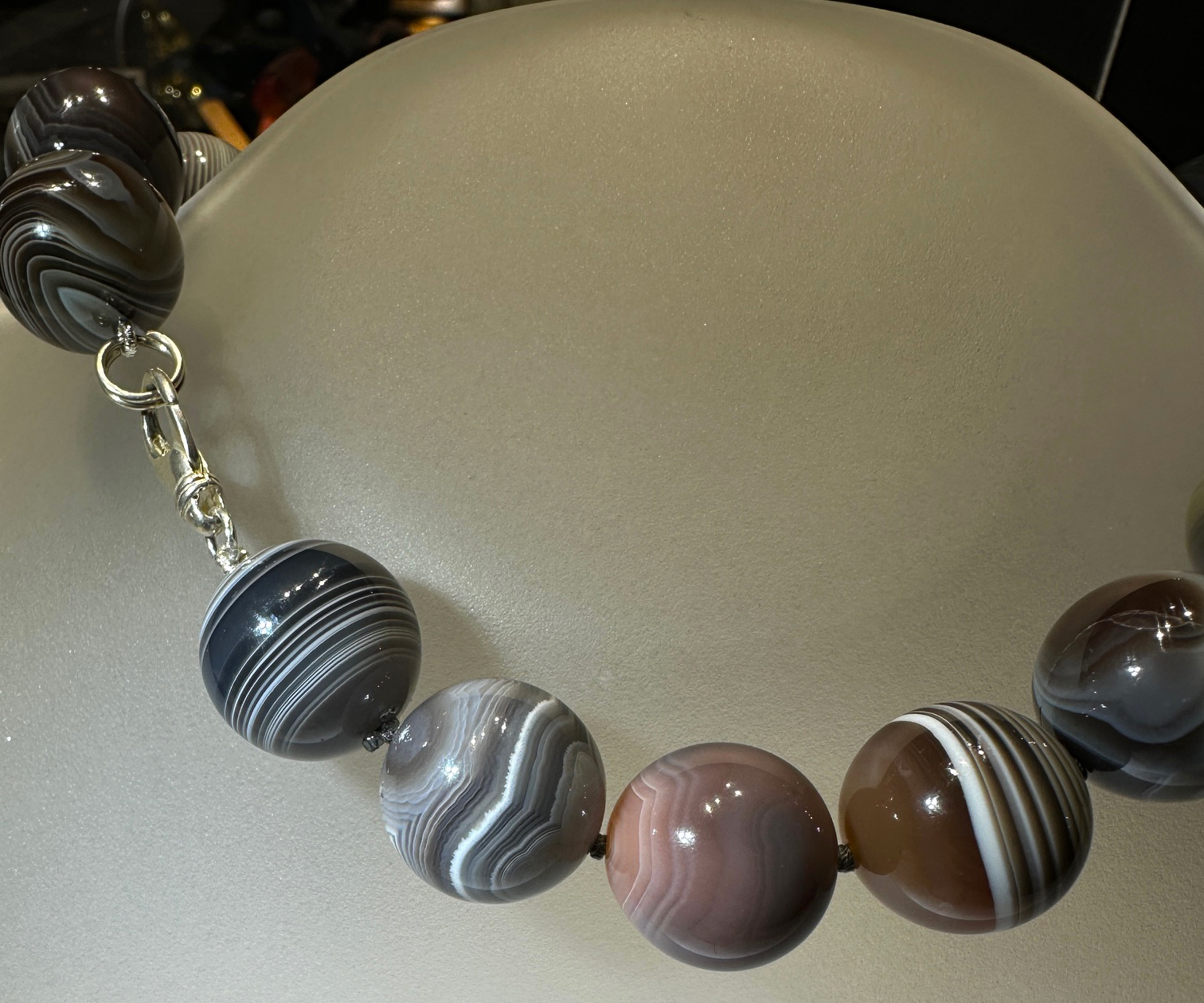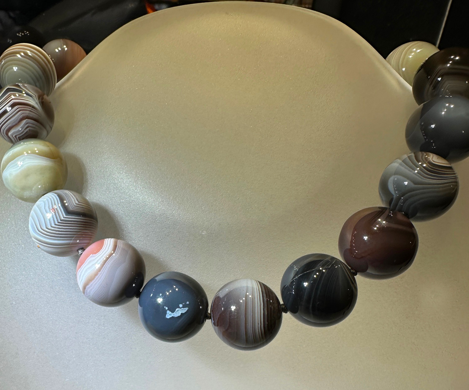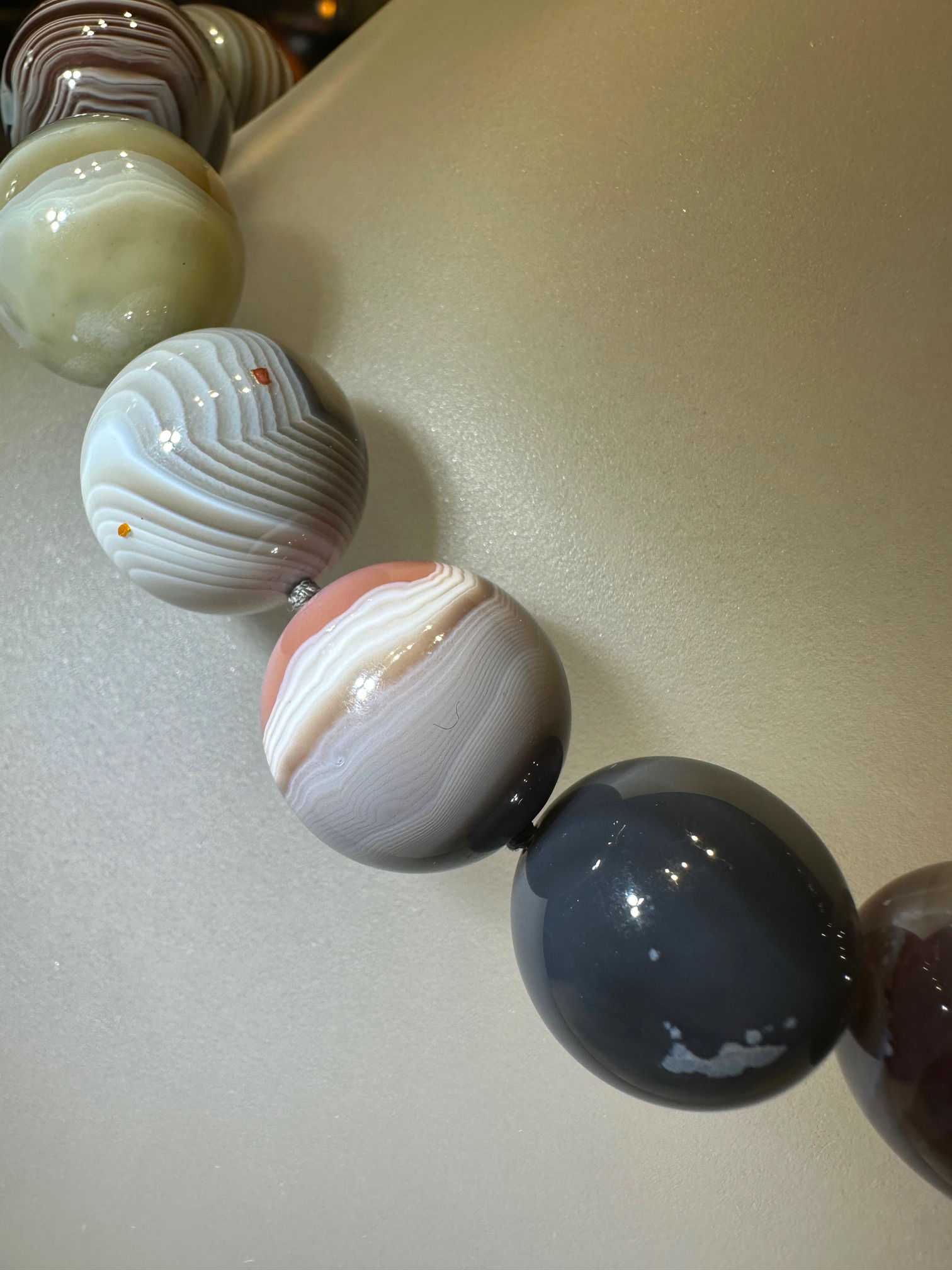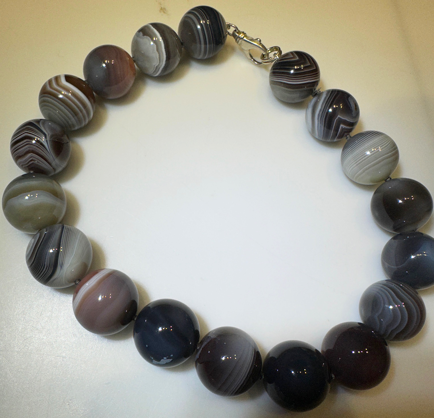 Collana di agata del Borzawana naturale a sfera mm20 lunghezza ciollana cm 44 con chiusura in argento 925‰.