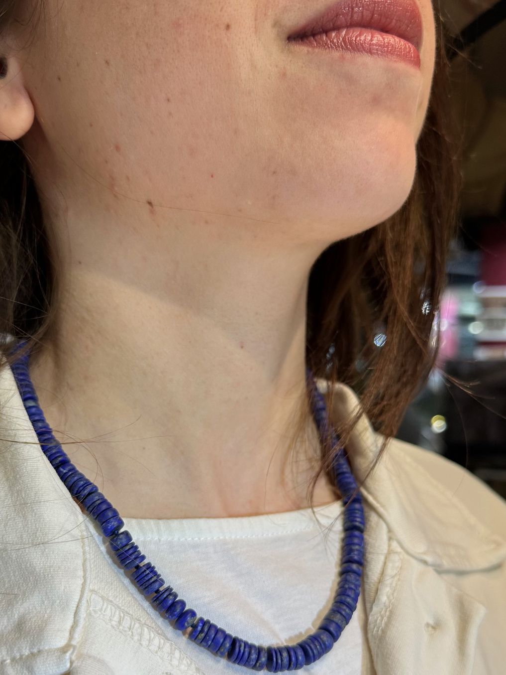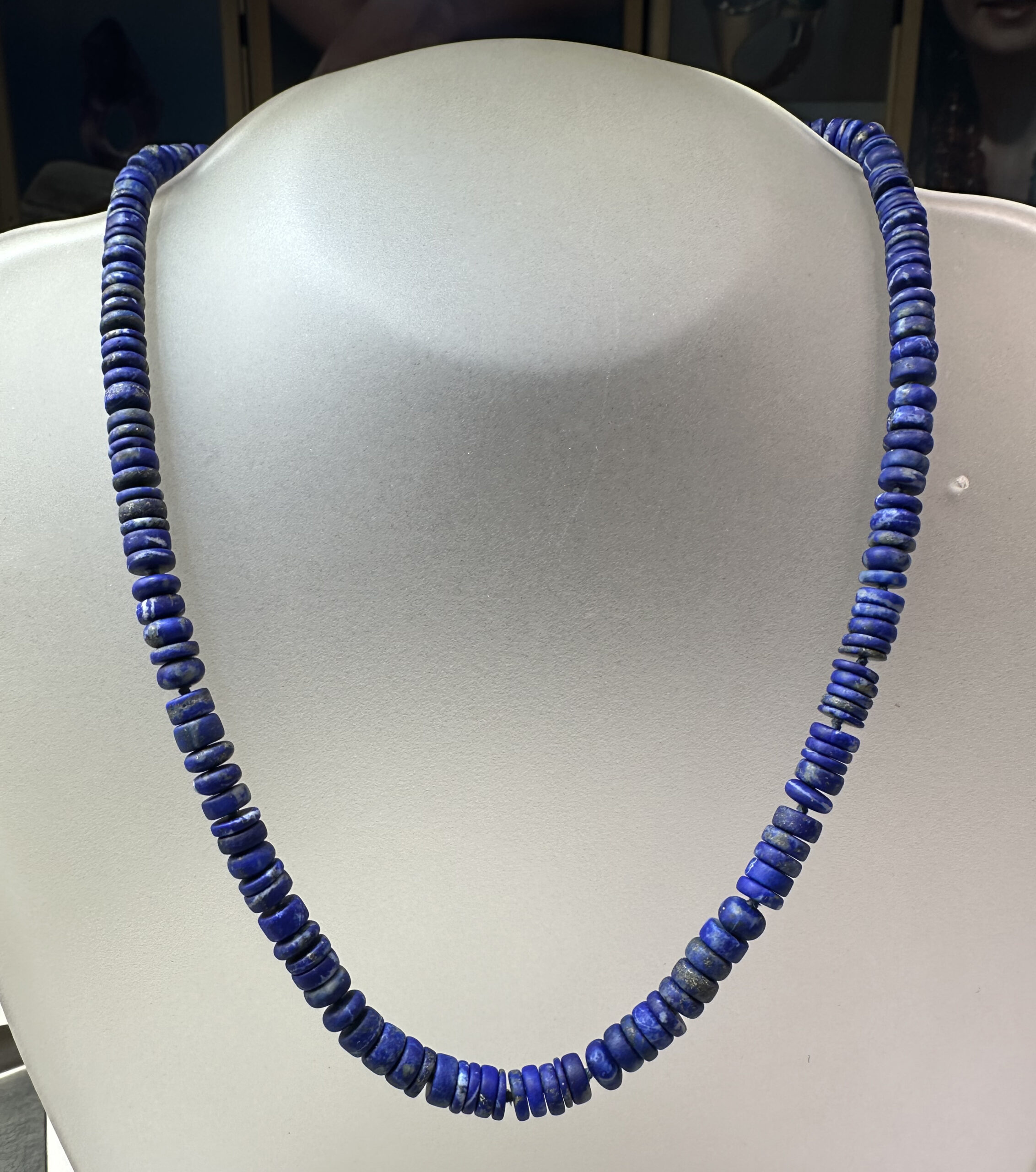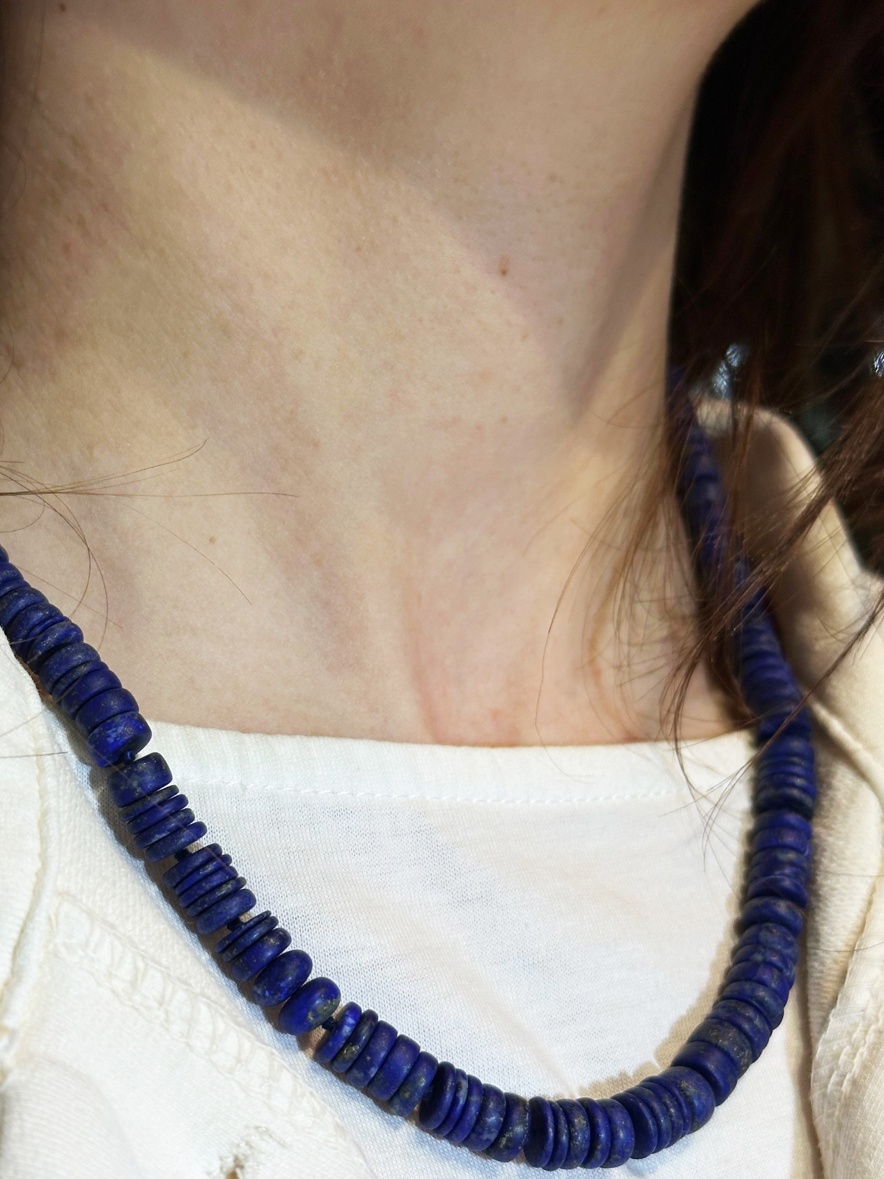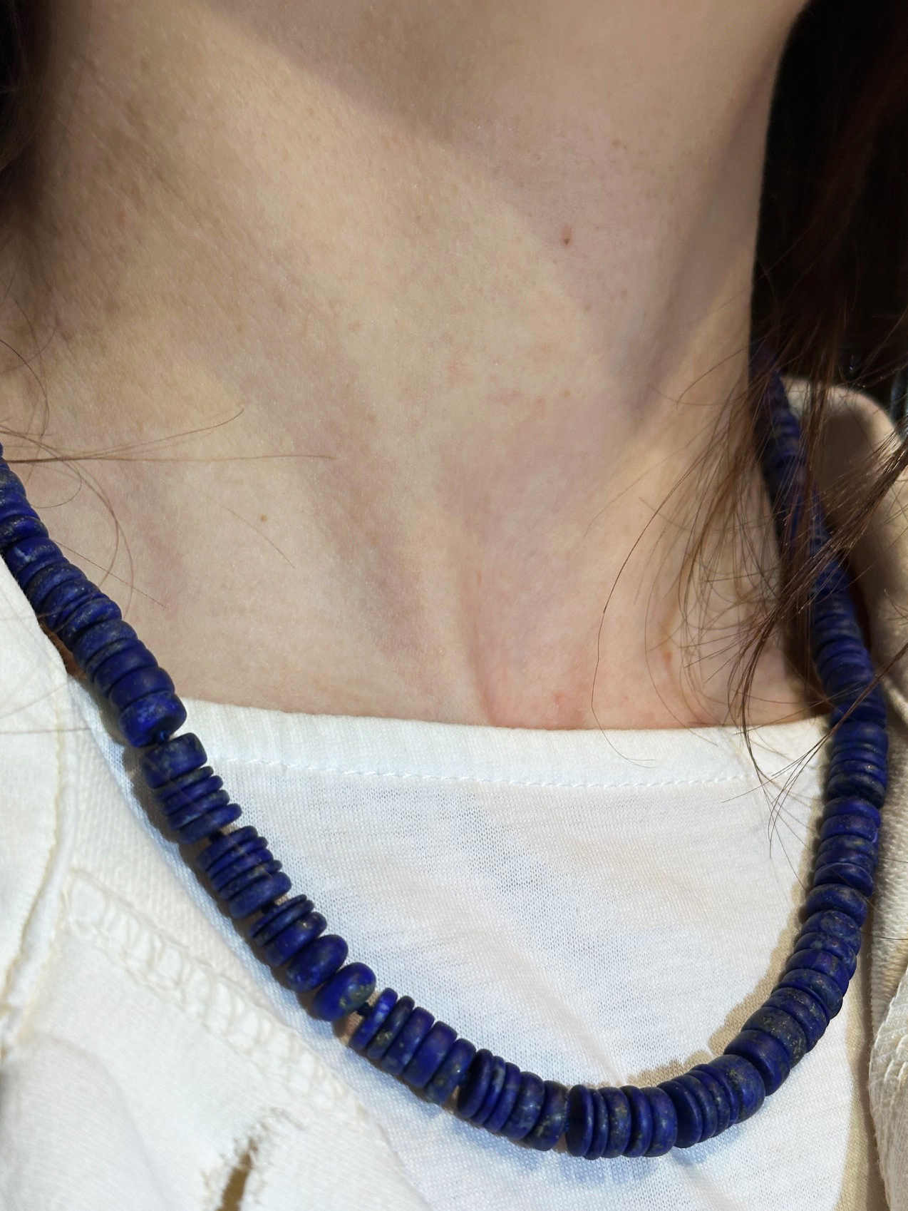 Collana in lapislazzuli opaco a rondelle cm 51 diametro mm7 con chiusura in argento 925‰