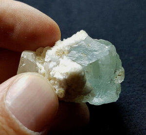 Descrizione: cristallo azzurro terminato traslucido, in associazione con altri minerali