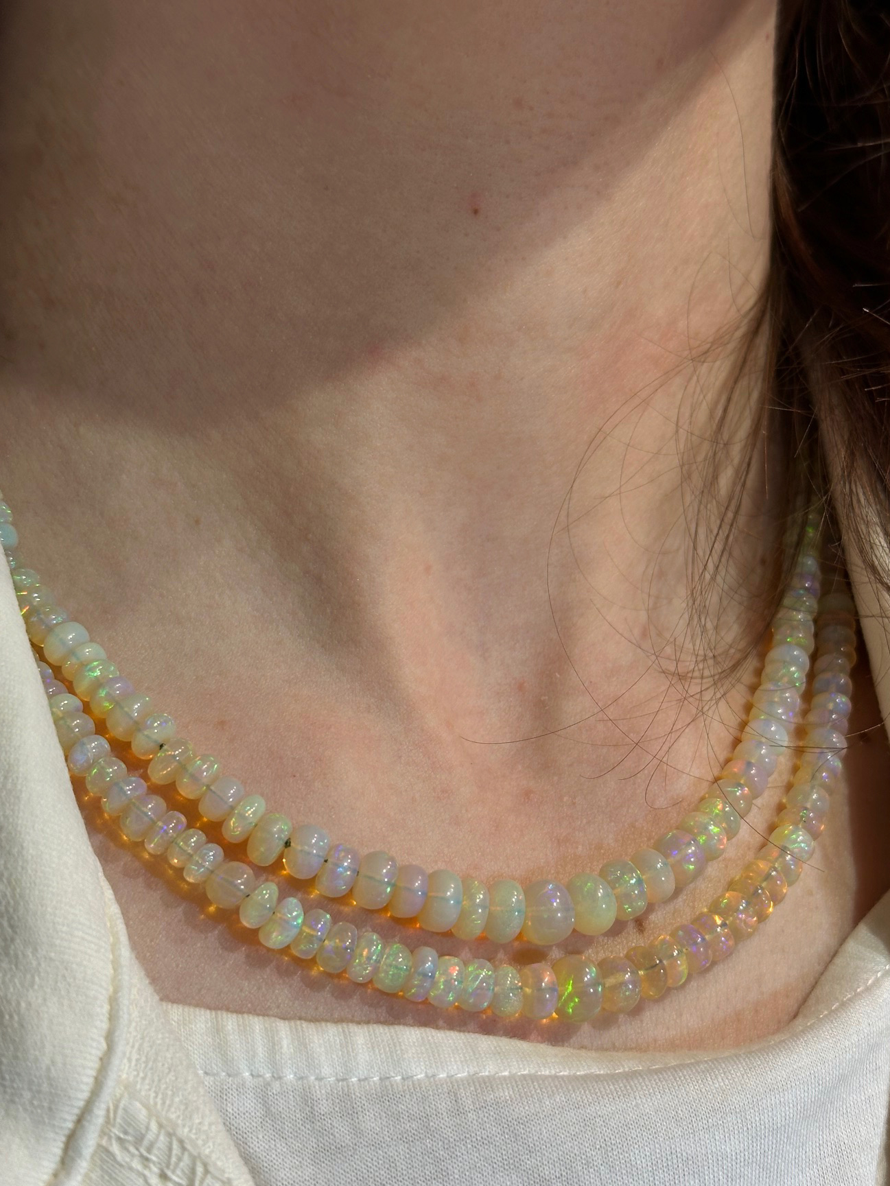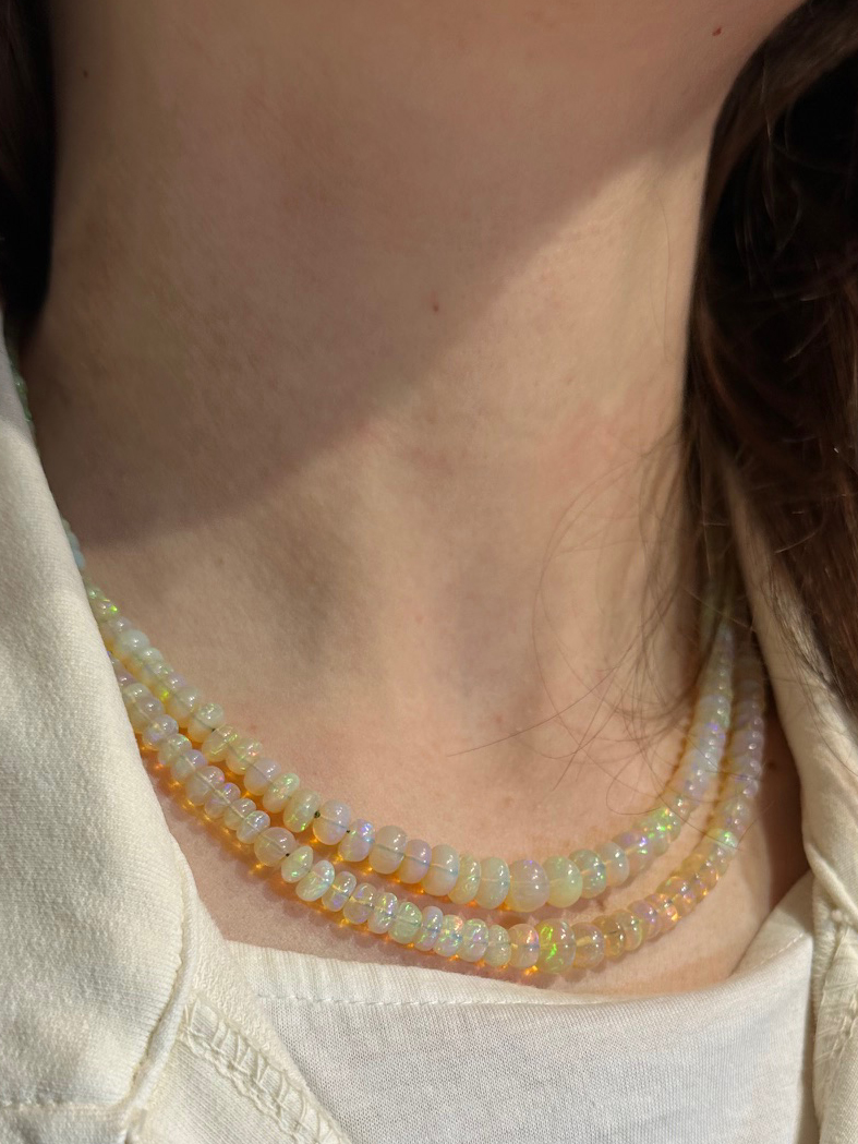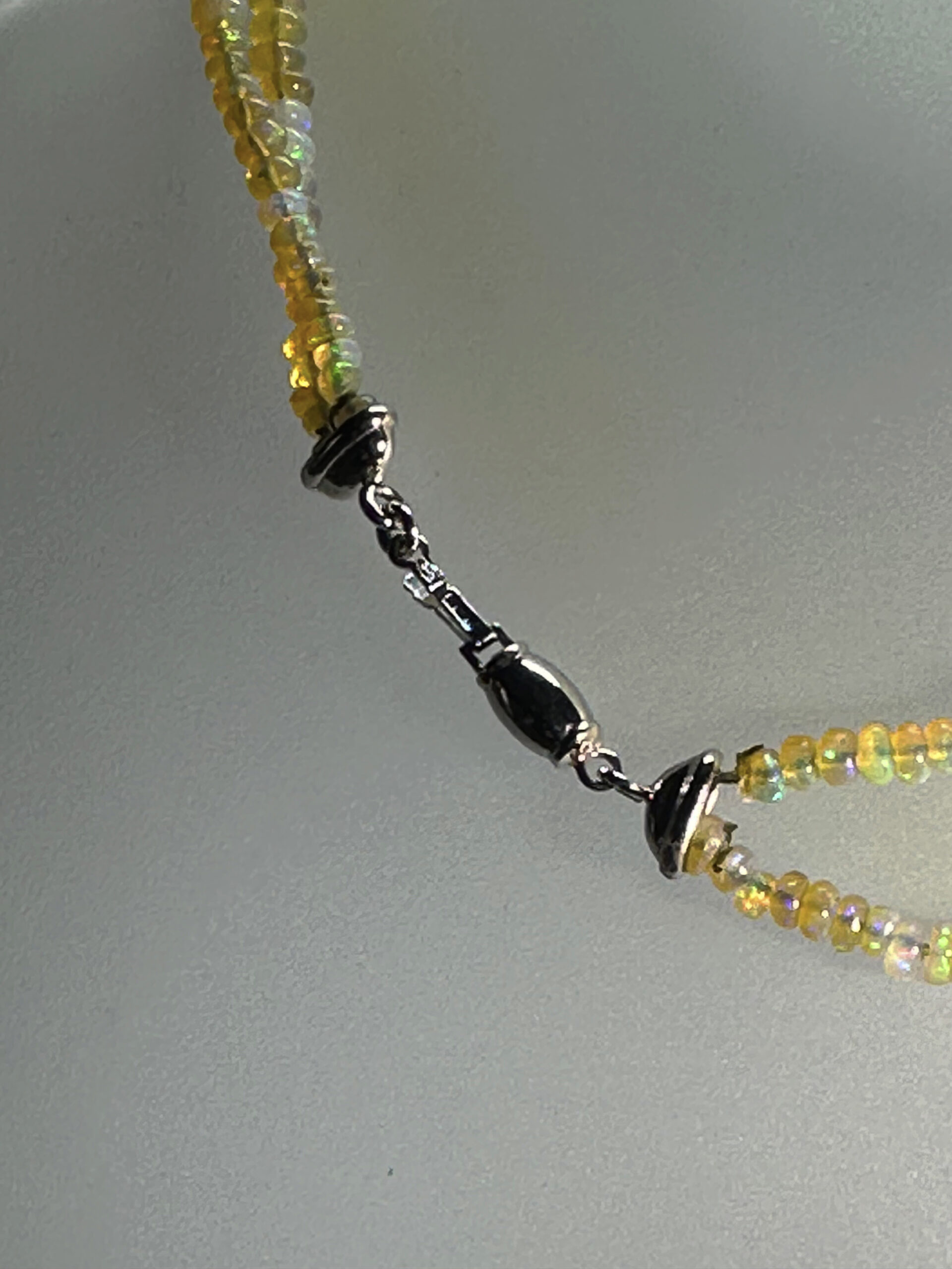 Filo doppio in Opale arlecchino provenienza Etiopia con chiusura in oro bianco 750‰