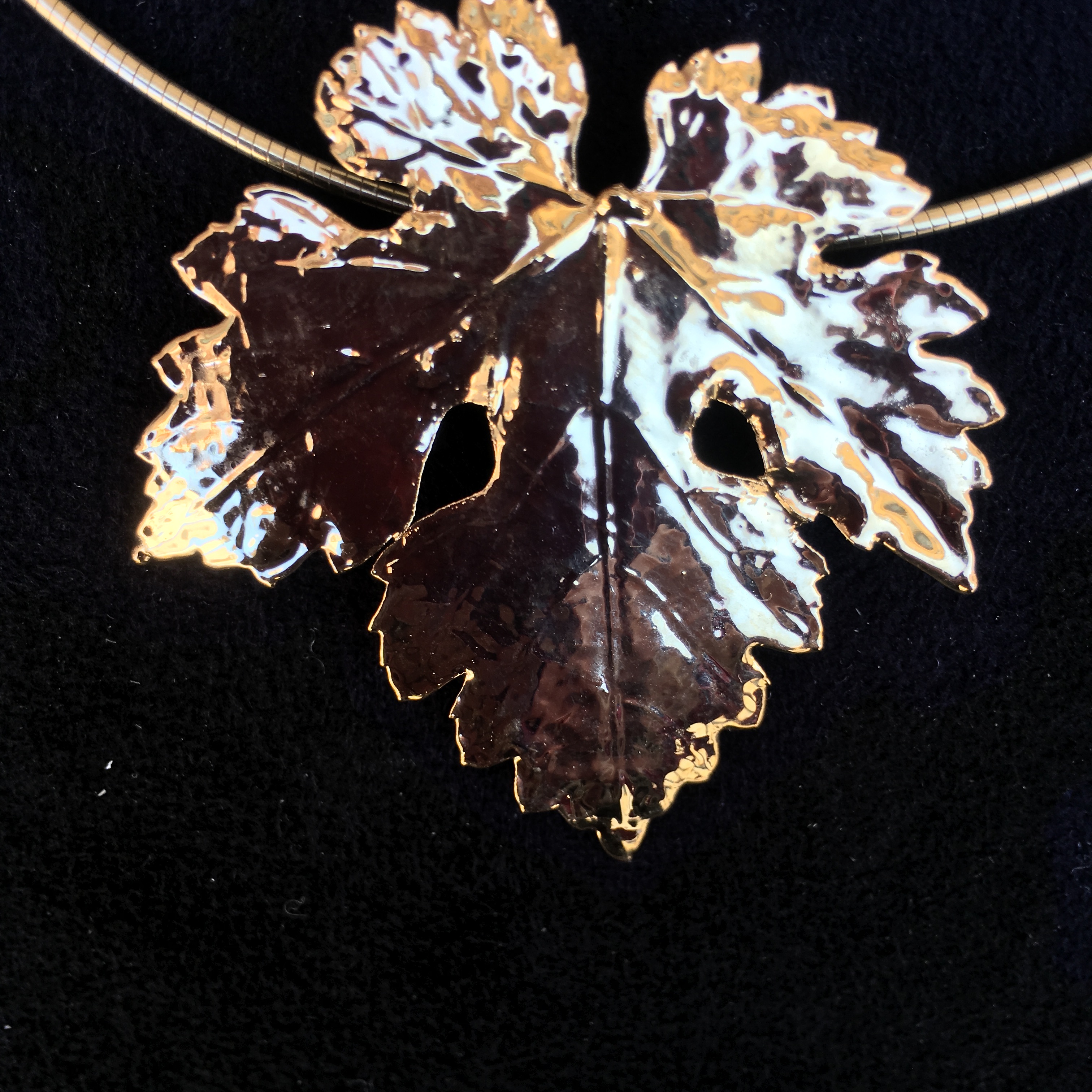 Vera foglia di Vite rivestita galvanicamente in oro. Disponibile anche in argento e oro bianco.