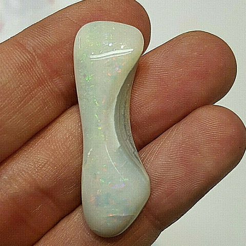 Descrizione: frammento di conchiglia fossile opalizzata lavorata, opale latteo arlecchino