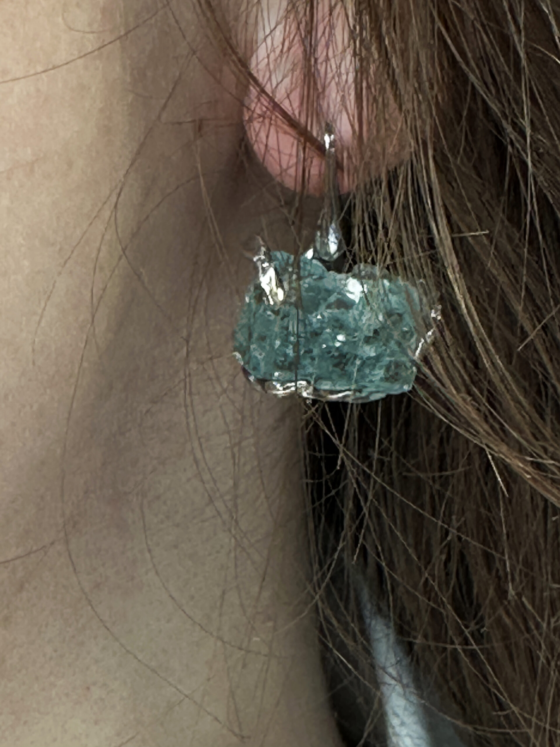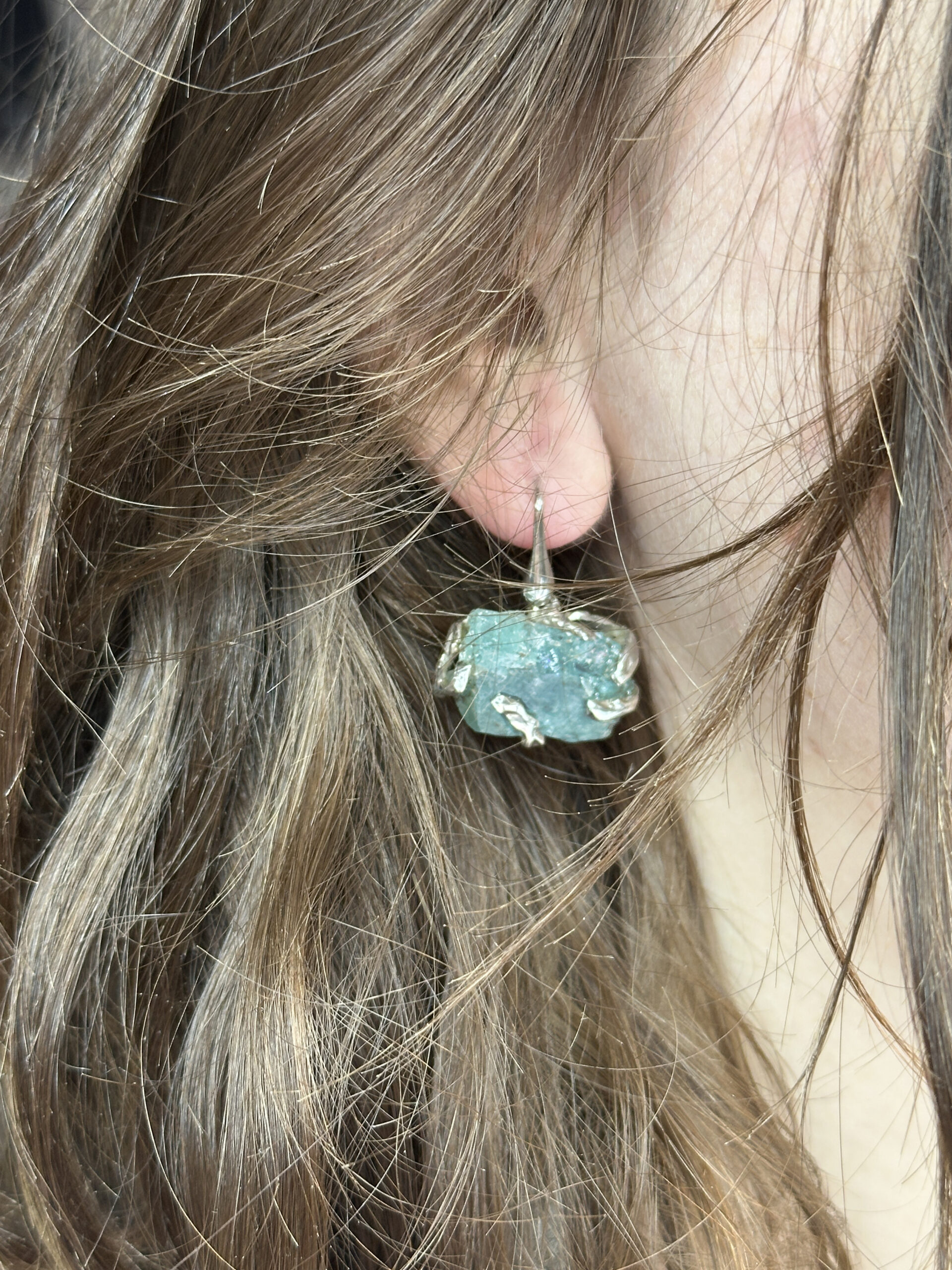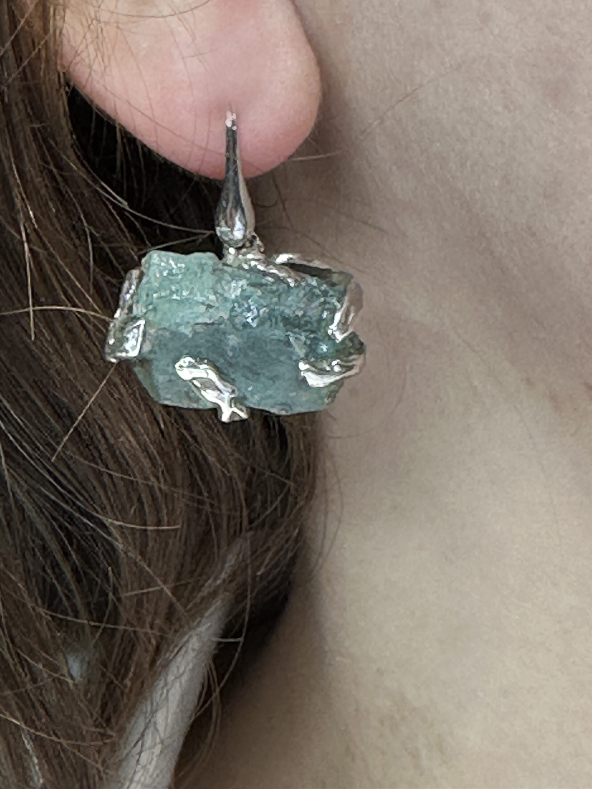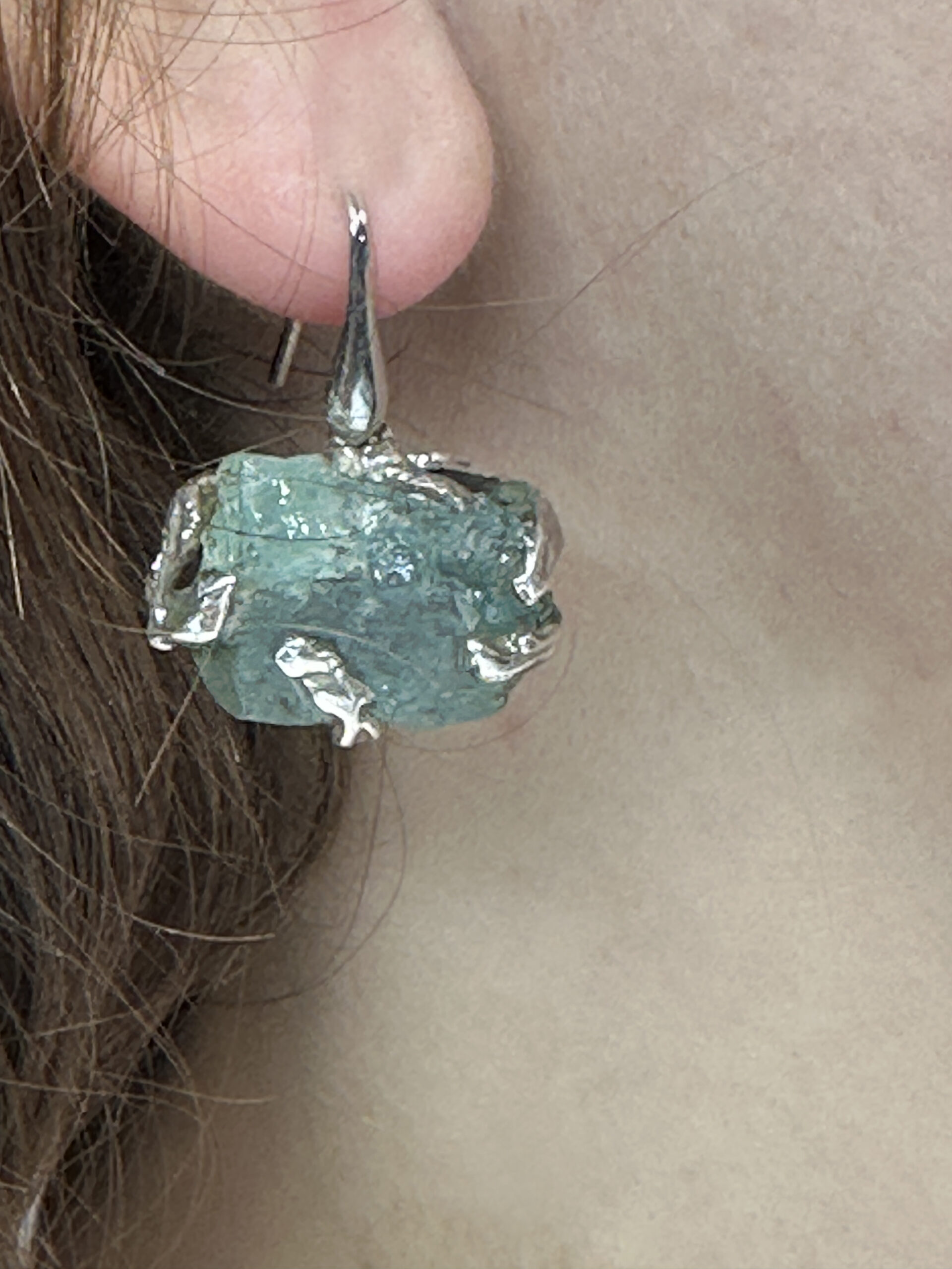Orecchini del ramo di fuoco in argento 925‰ e acquamarina cristallo mm 21x12x9 e mm 22x14x8