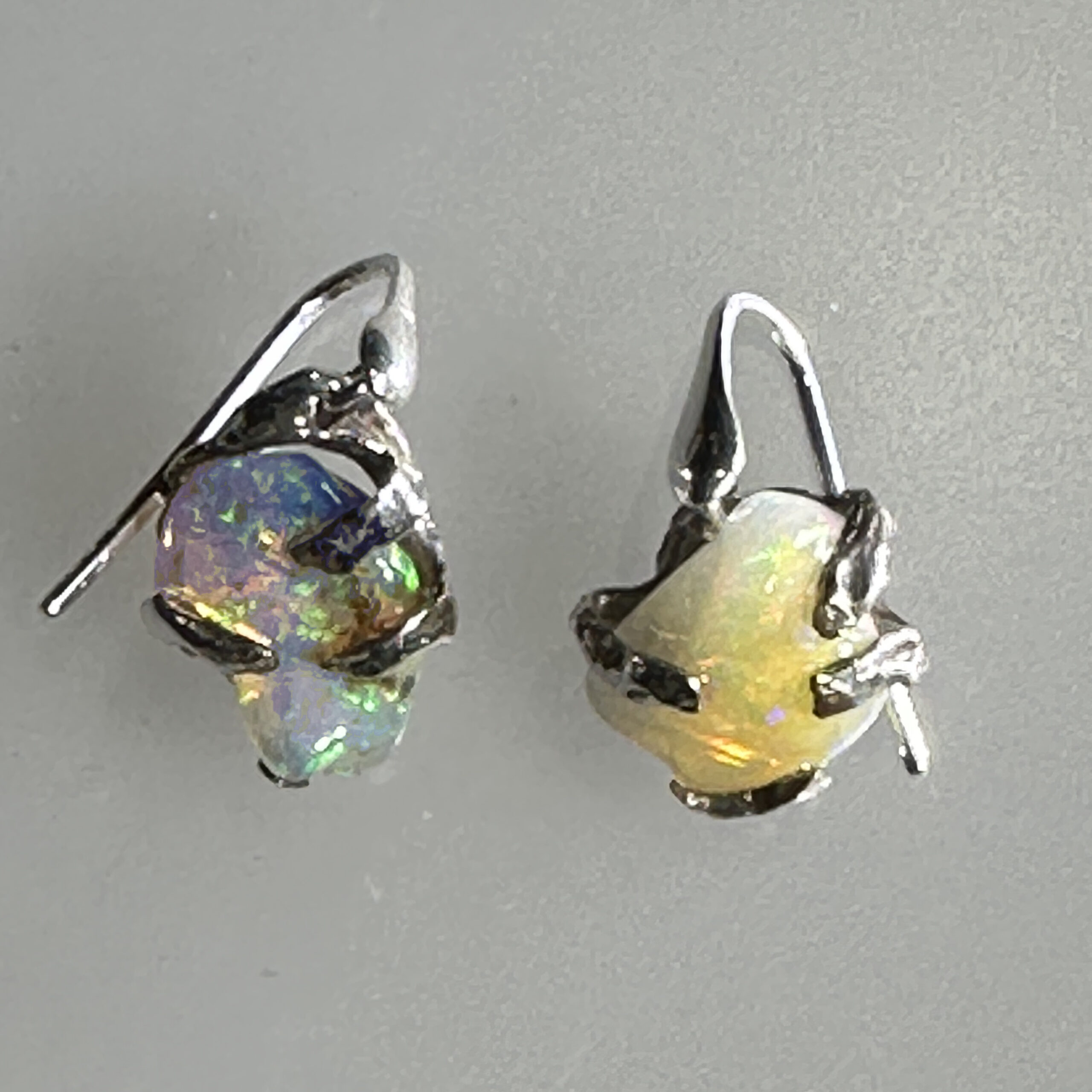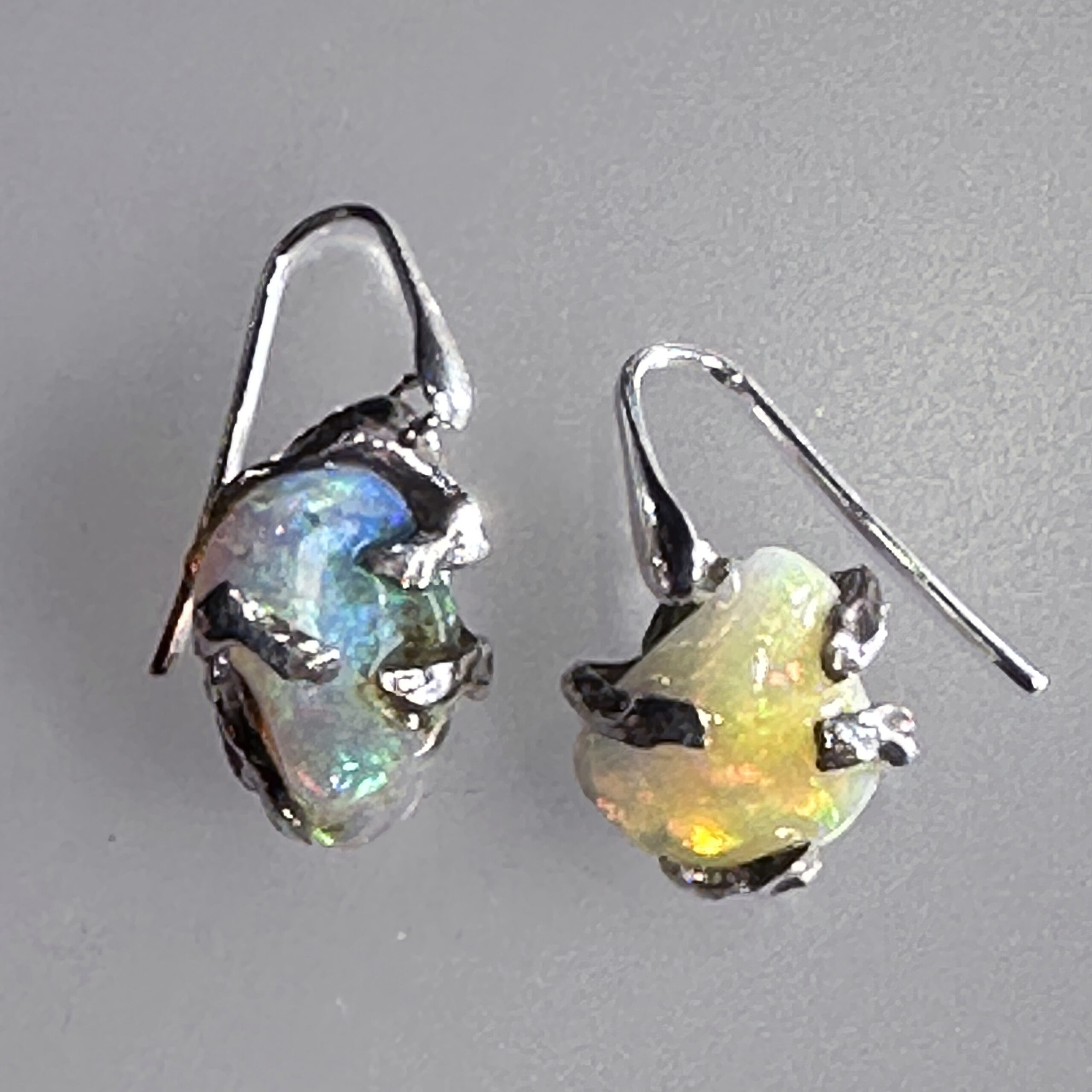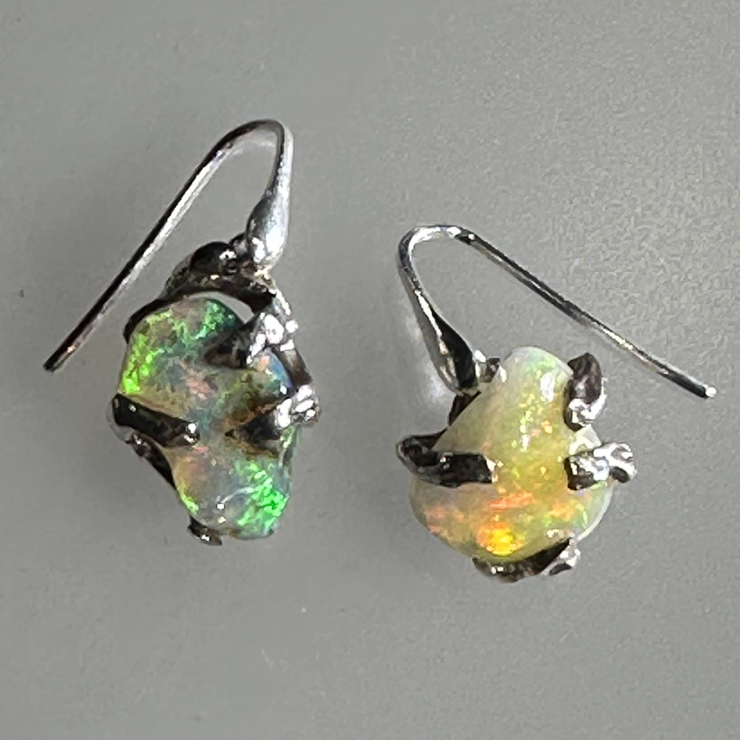 Orecchini del ramo di fuoco in argento 925‰ e opale arlecchino Etiopia