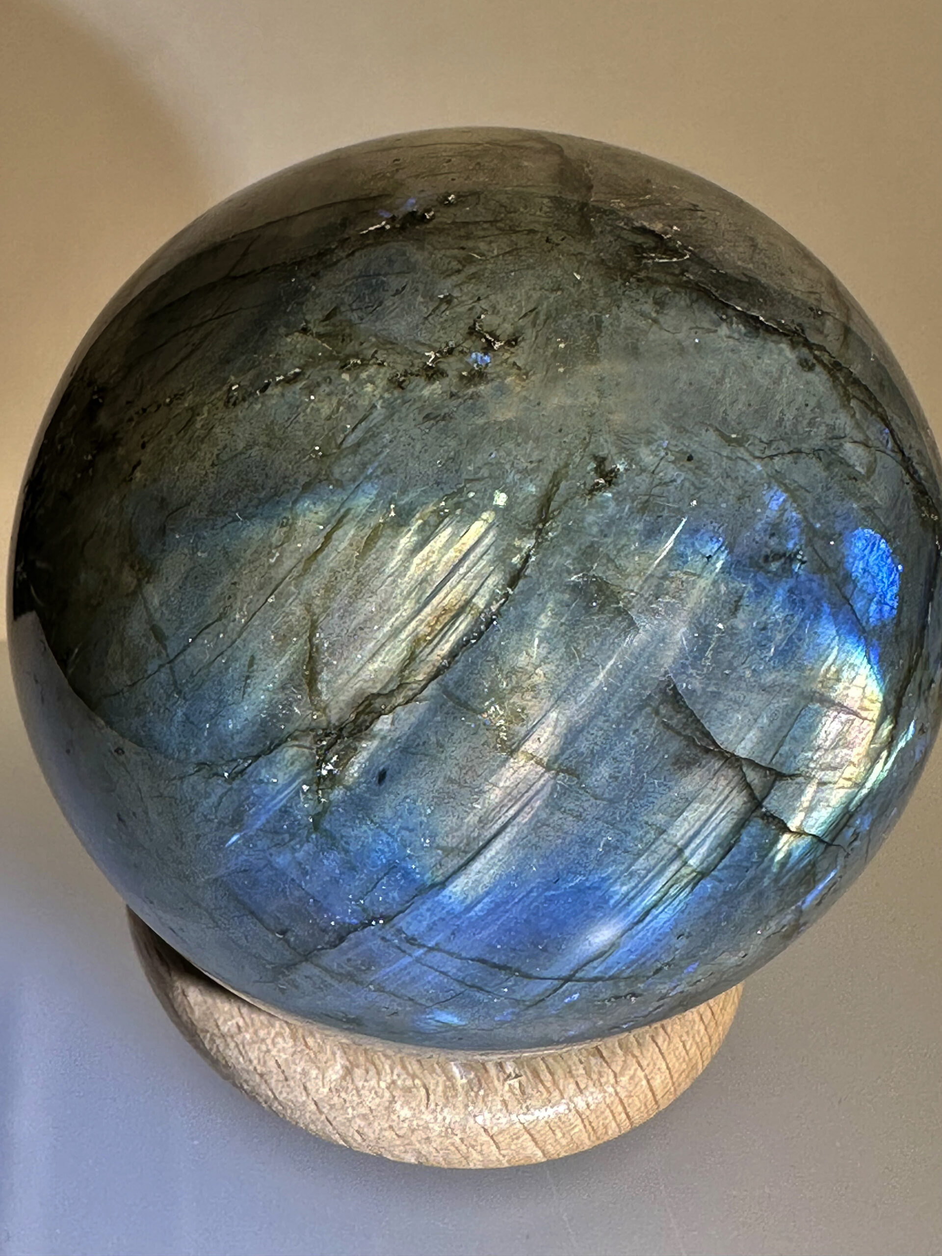 Sfera massiva con labradorescenza diffusa blu/azzurro/oro