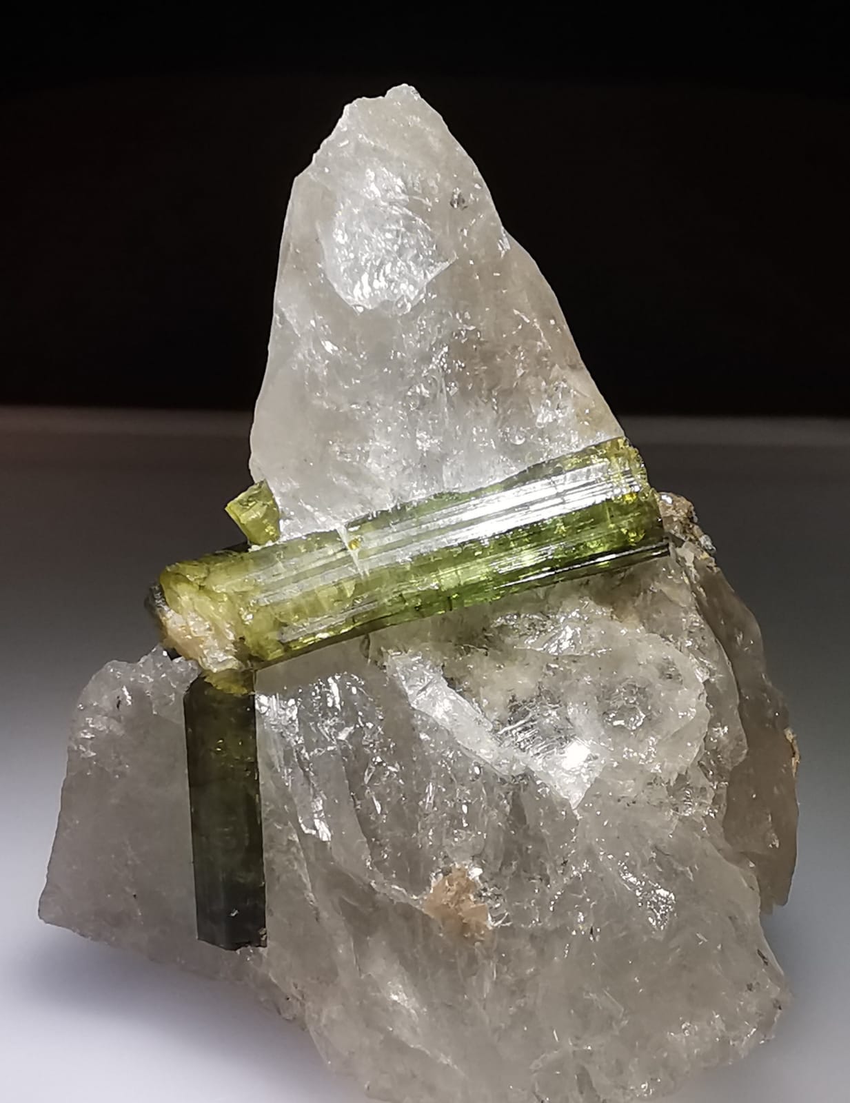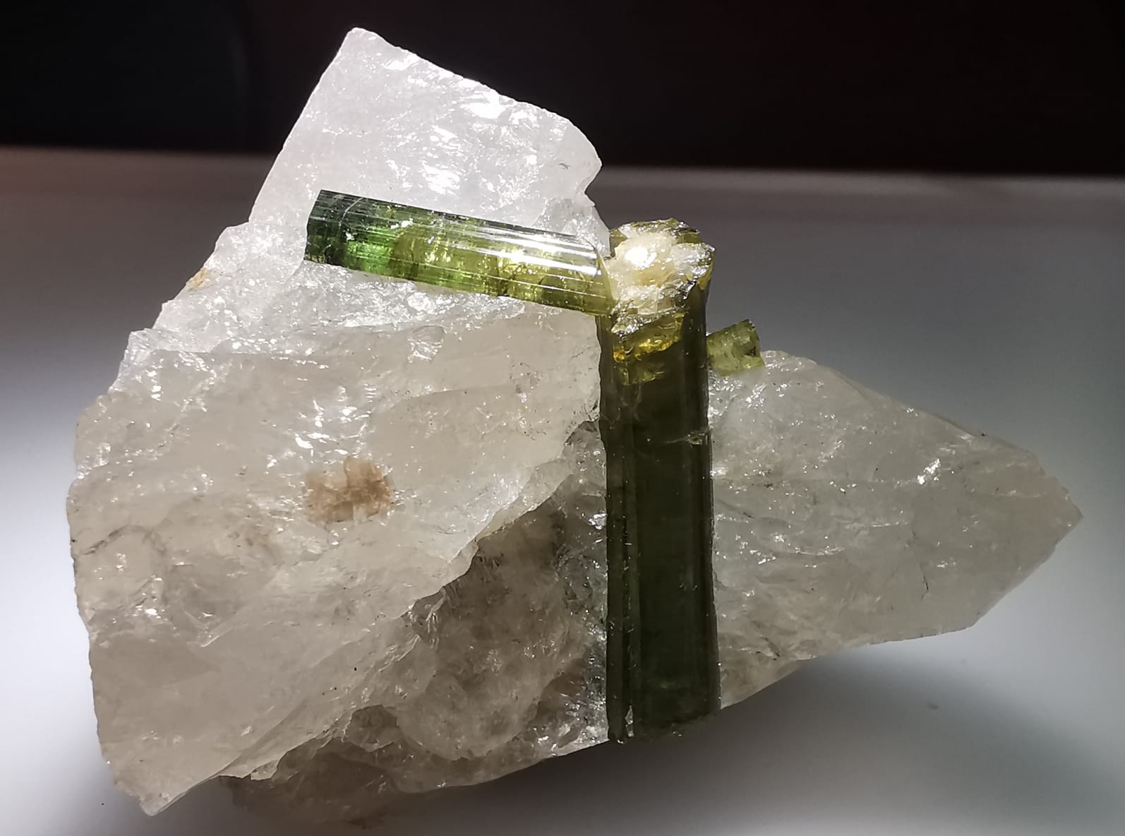 Splendida Tormalina verde su quarzo (Beautiful Green Tourmaline on Quartz)
