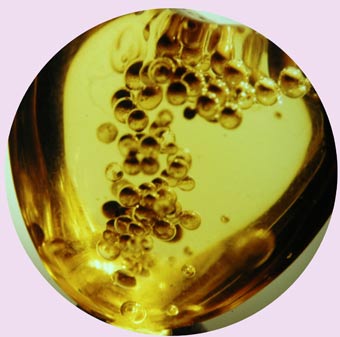MICROSCOPE: It’s the most exciting stone to be examined under a microscope. In addition to the typical inclusions, one can meet organic remains such as pollen, eggs, flowers, insects, tiny vertebrates.